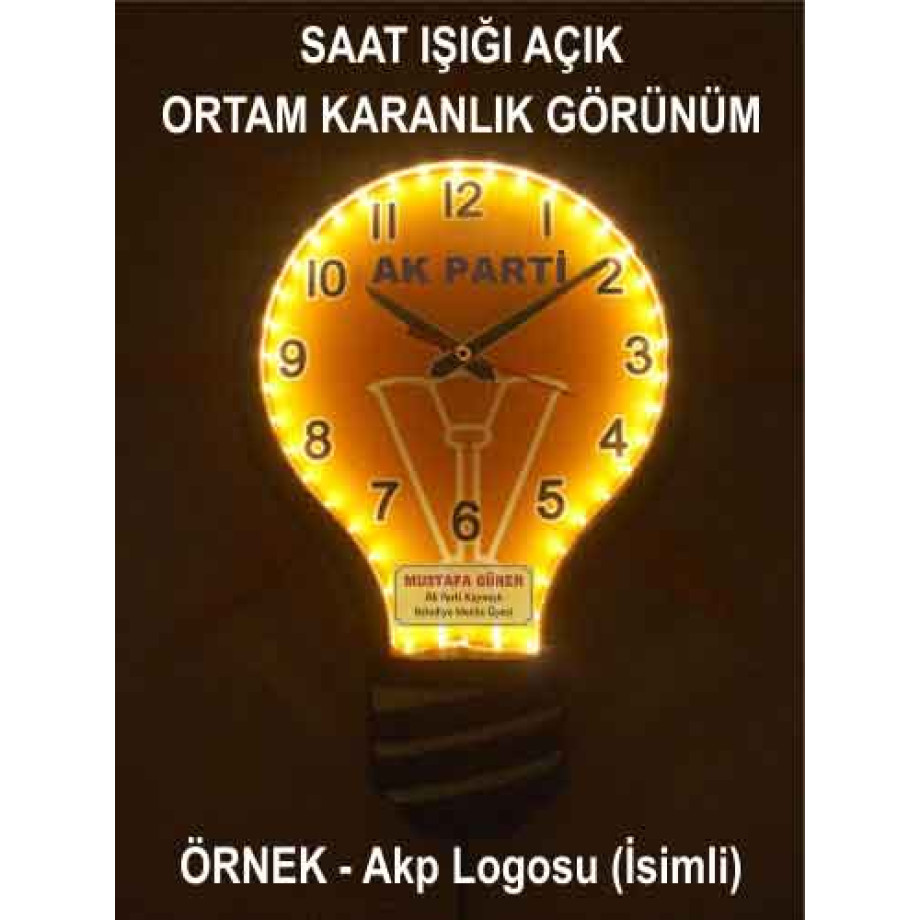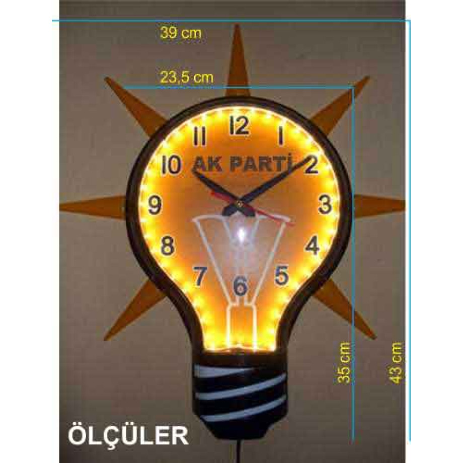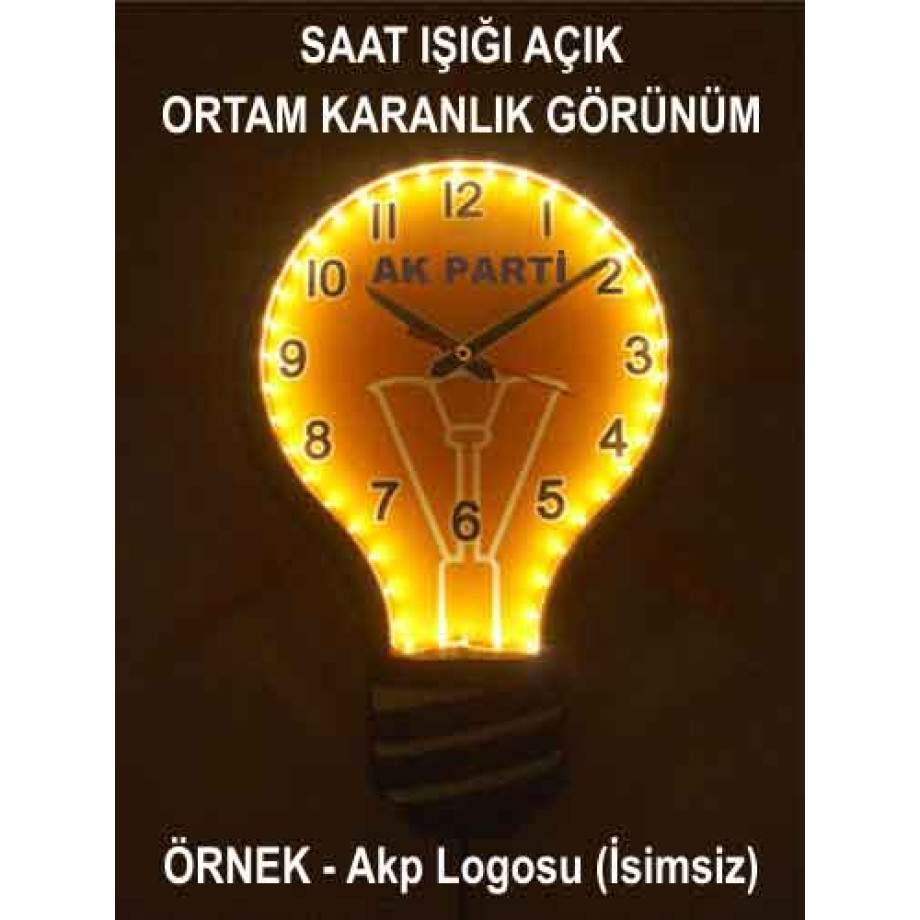 Ampul Şeklinde Gece Gerçek Işık Veren Işıklı Ampul Duvar Saati 39x43cm AKPDSA06XNX