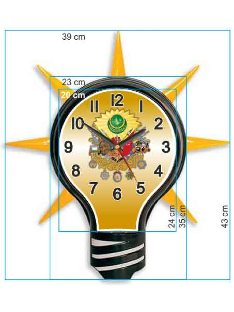 Ampul Şeklinde Osmanlı Arması Ampul Duvar Saati 39x43cm AKPDSA02NOA