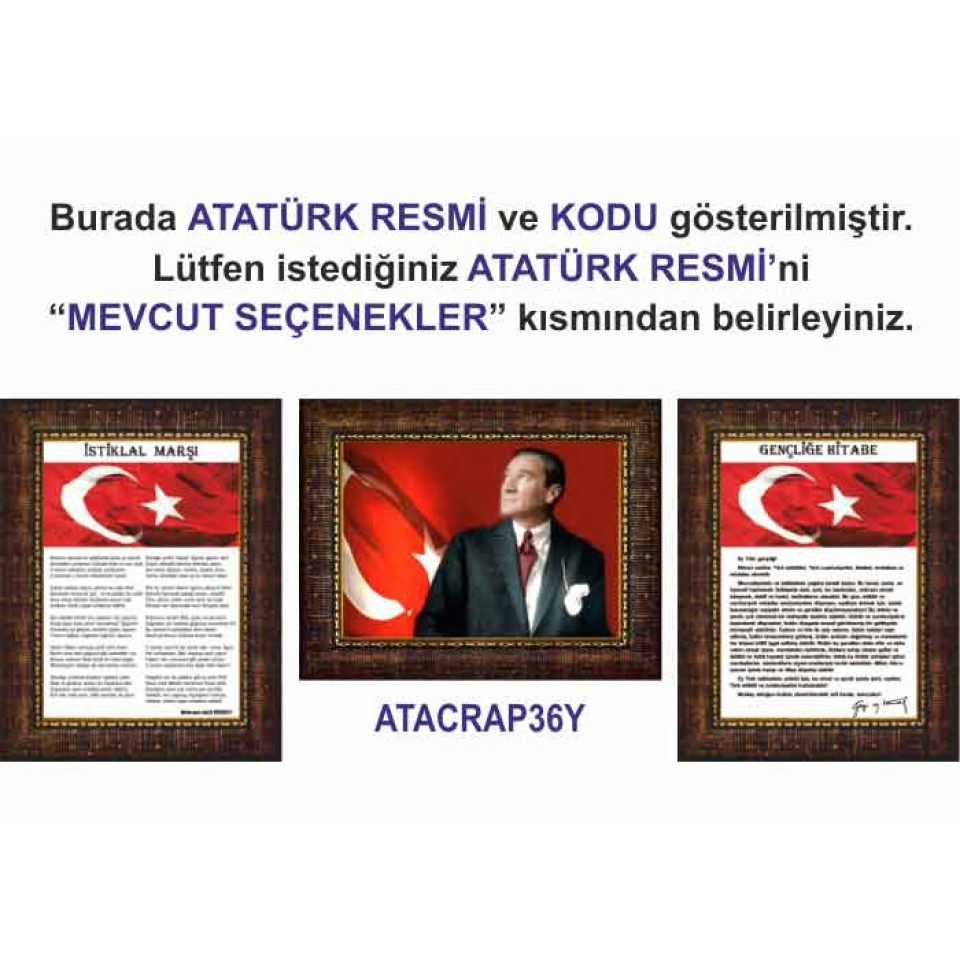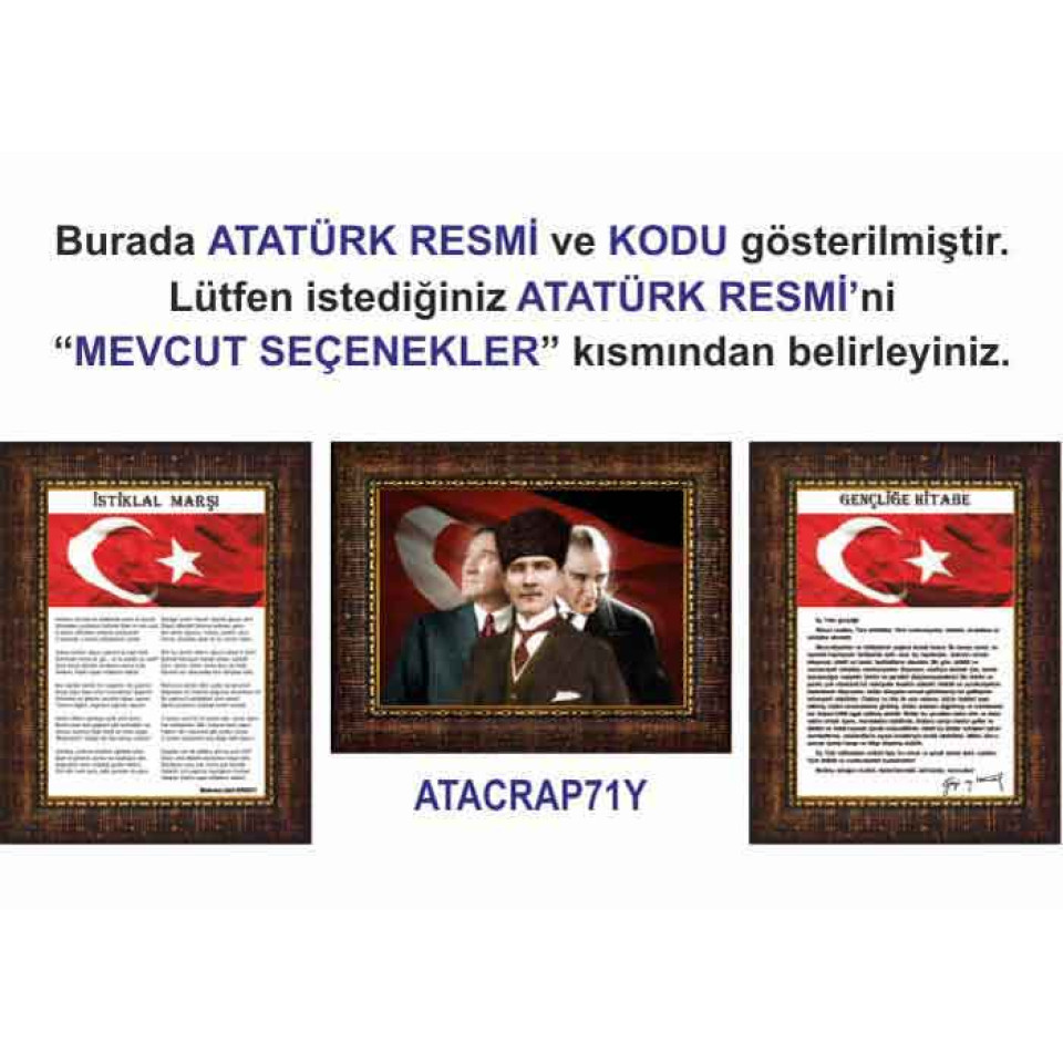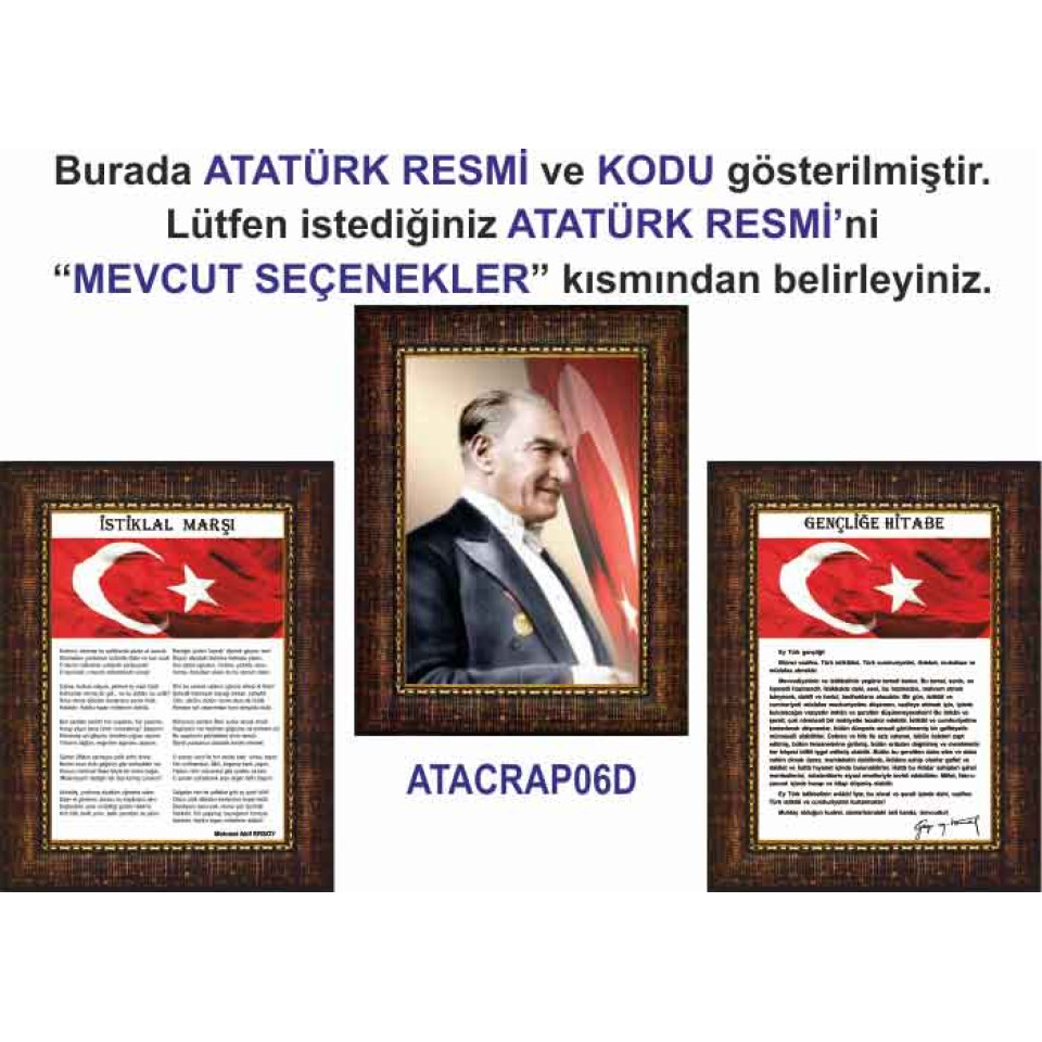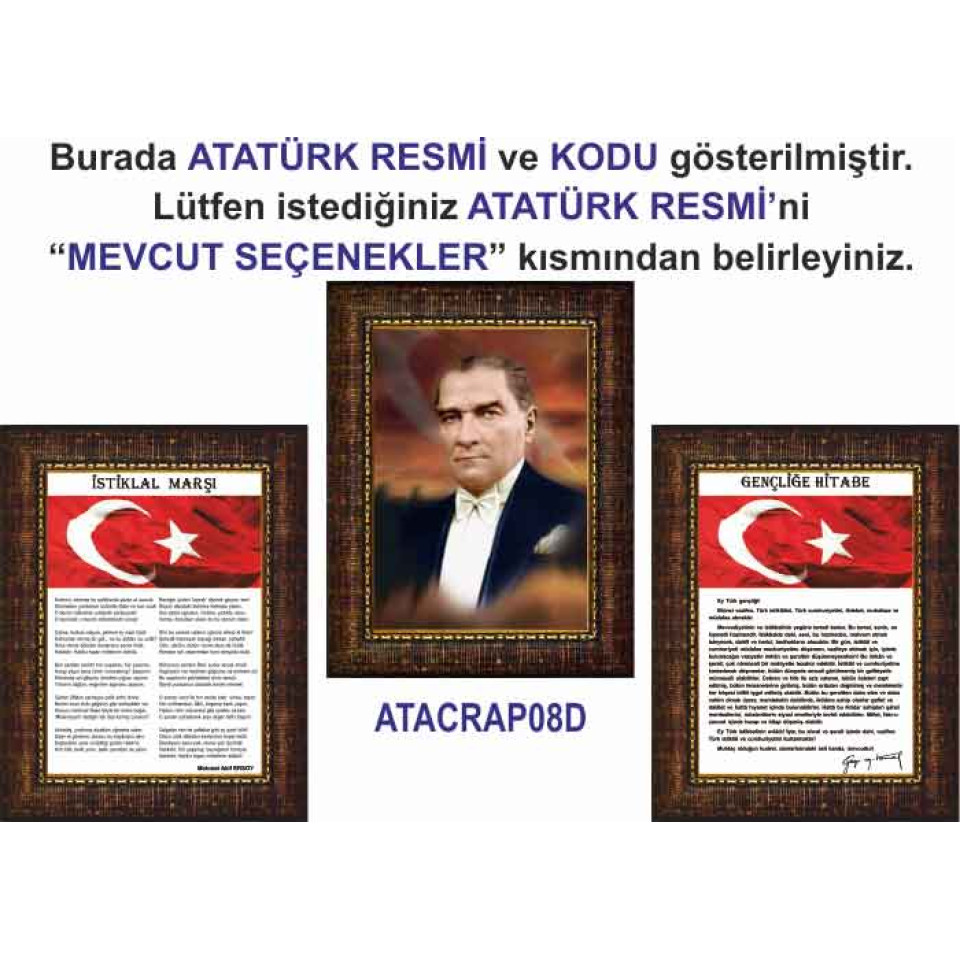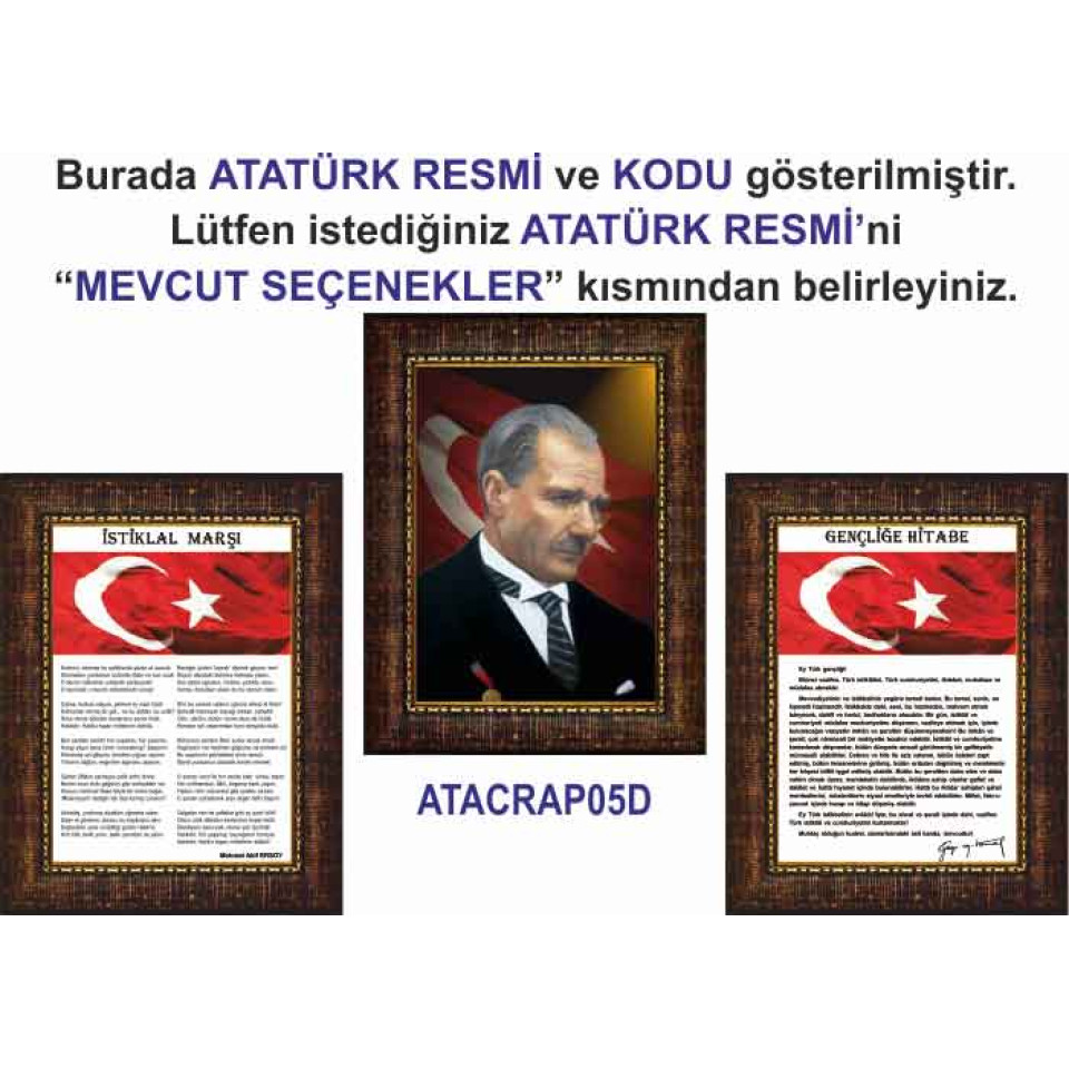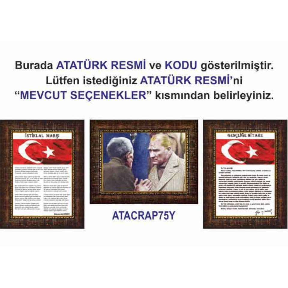 İstiklal Marşı ve Gençliğe Hitabe ve Atatürk Tablosu Çerçeveli Resim Üçlü Set ANICR41R3DY