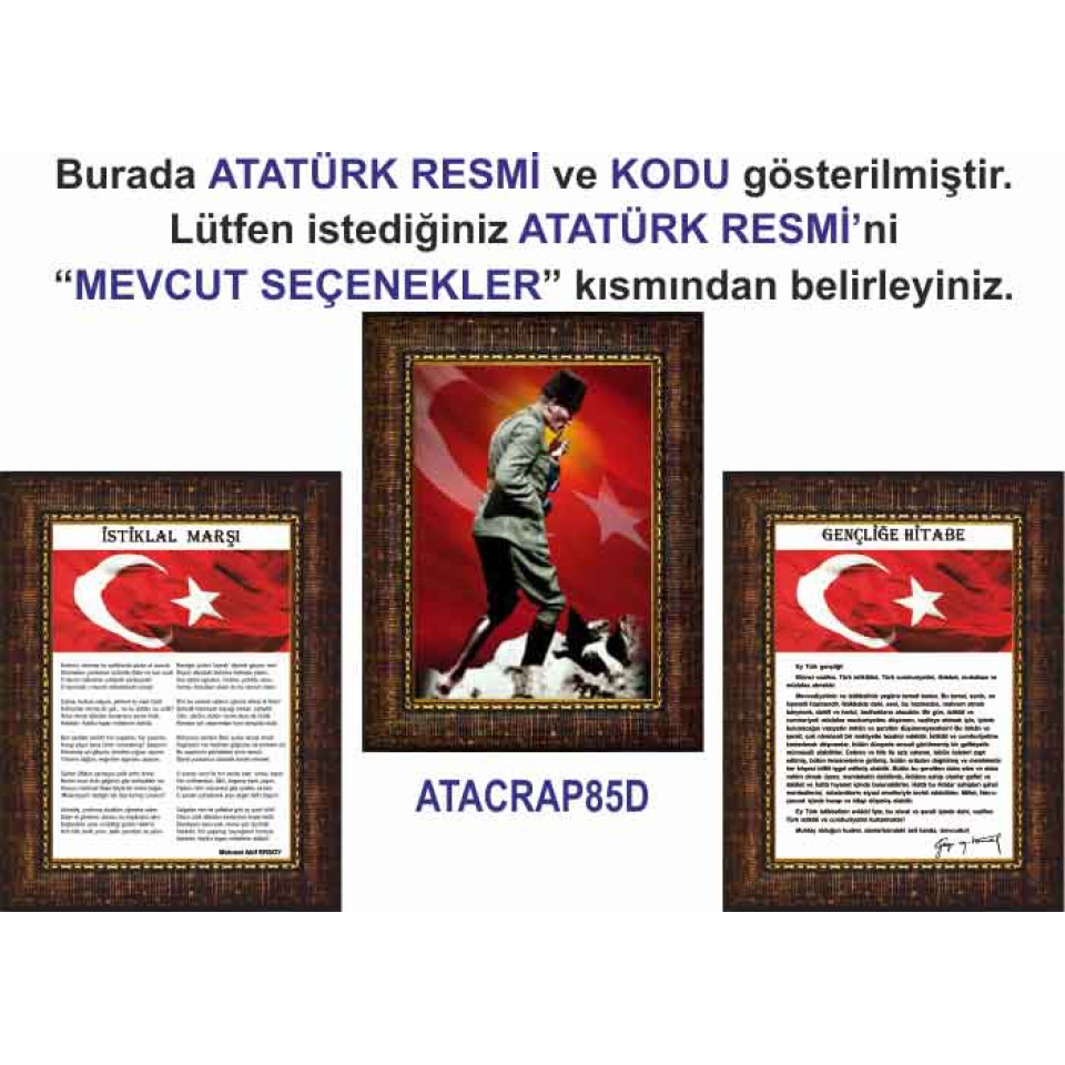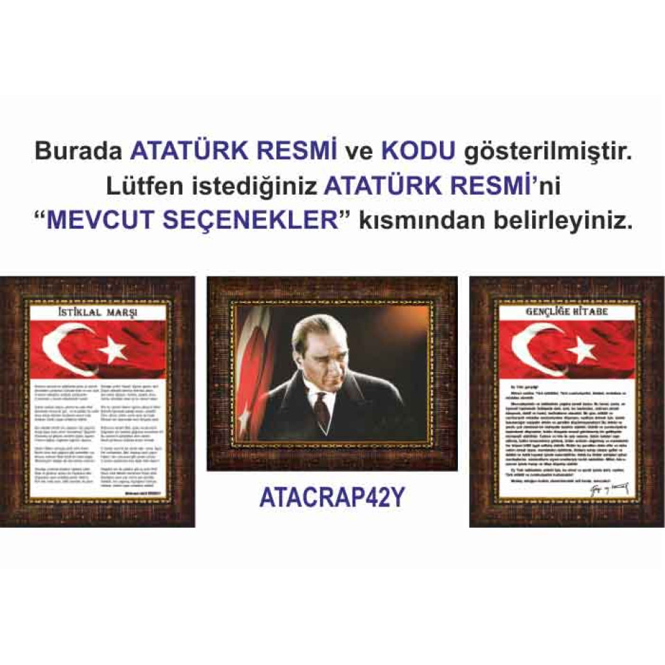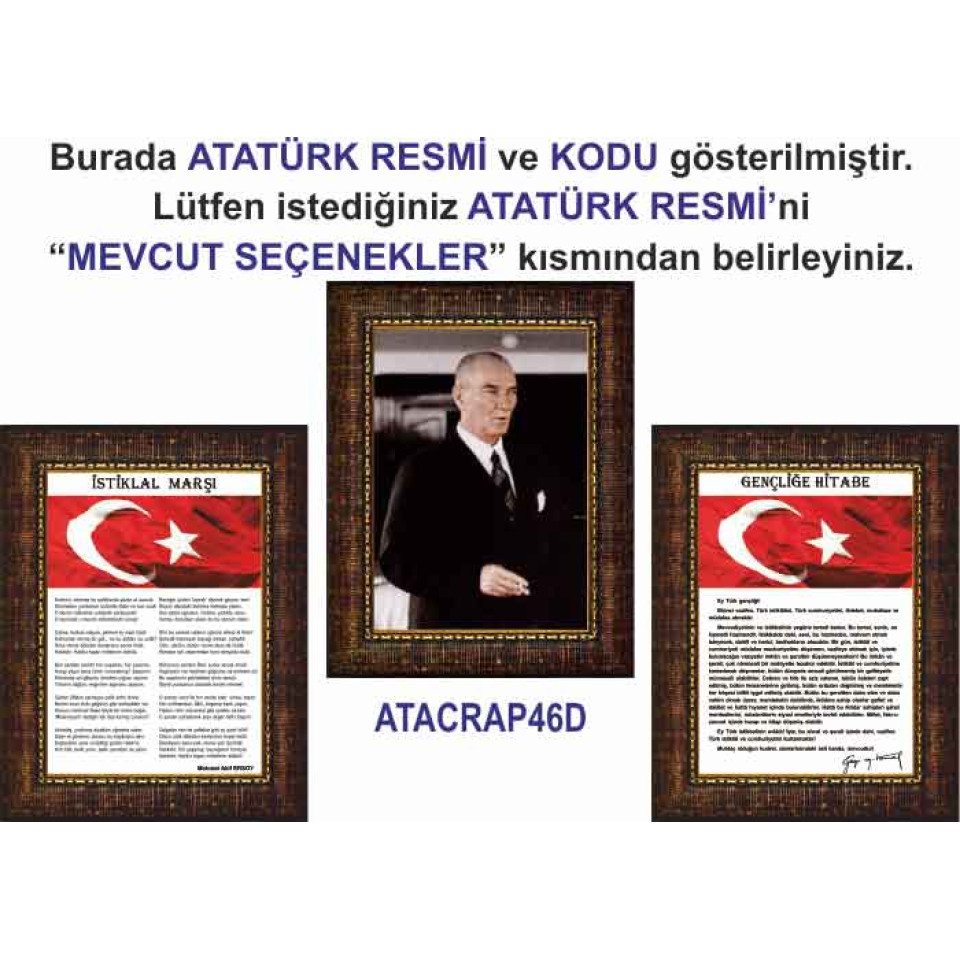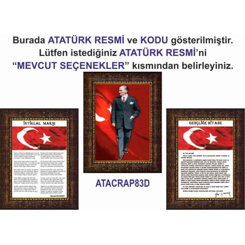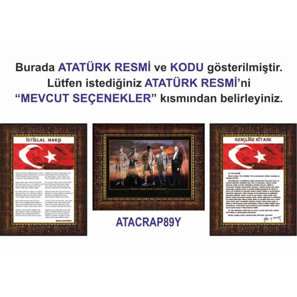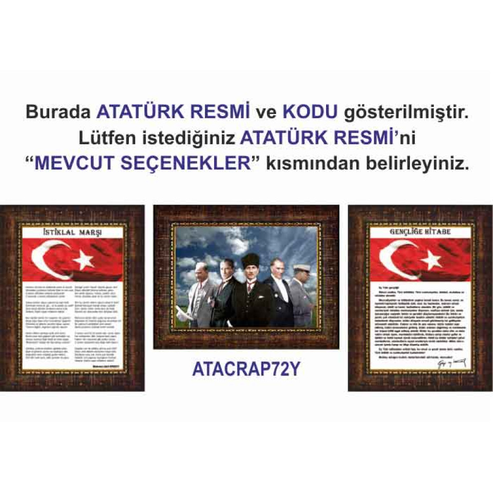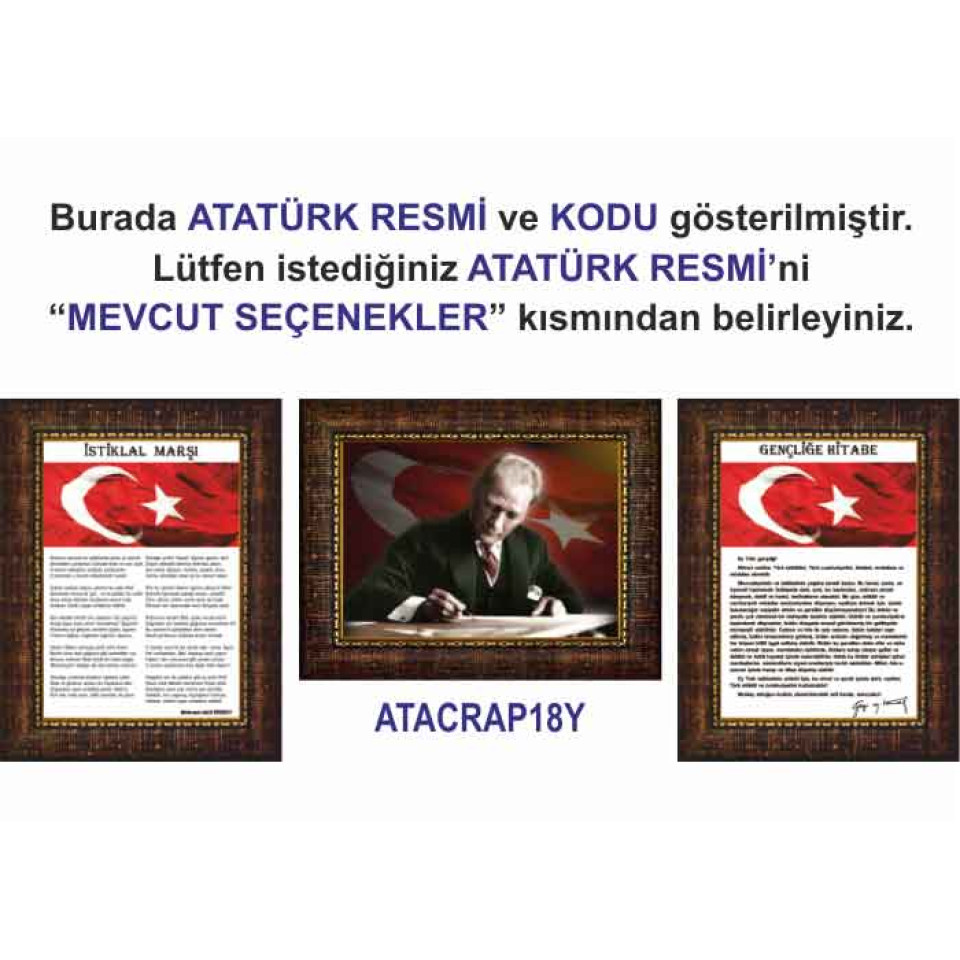 İstiklal Marşı ve Gençliğe Hitabe ve Atatürk Tablosu Çerçeveli Resim Üçlü Set ANICR41R3DY