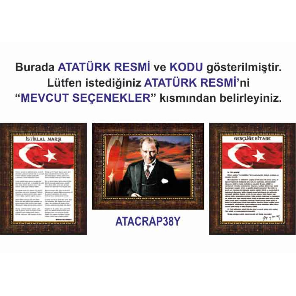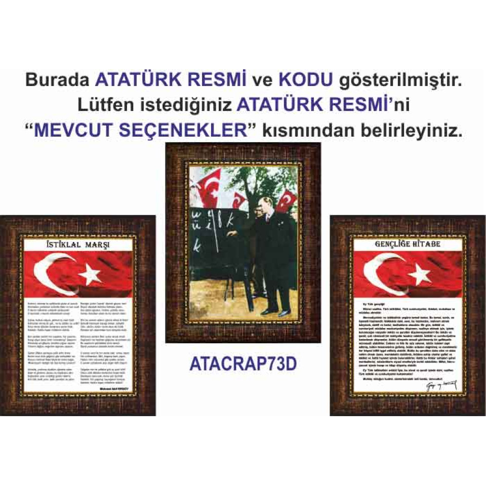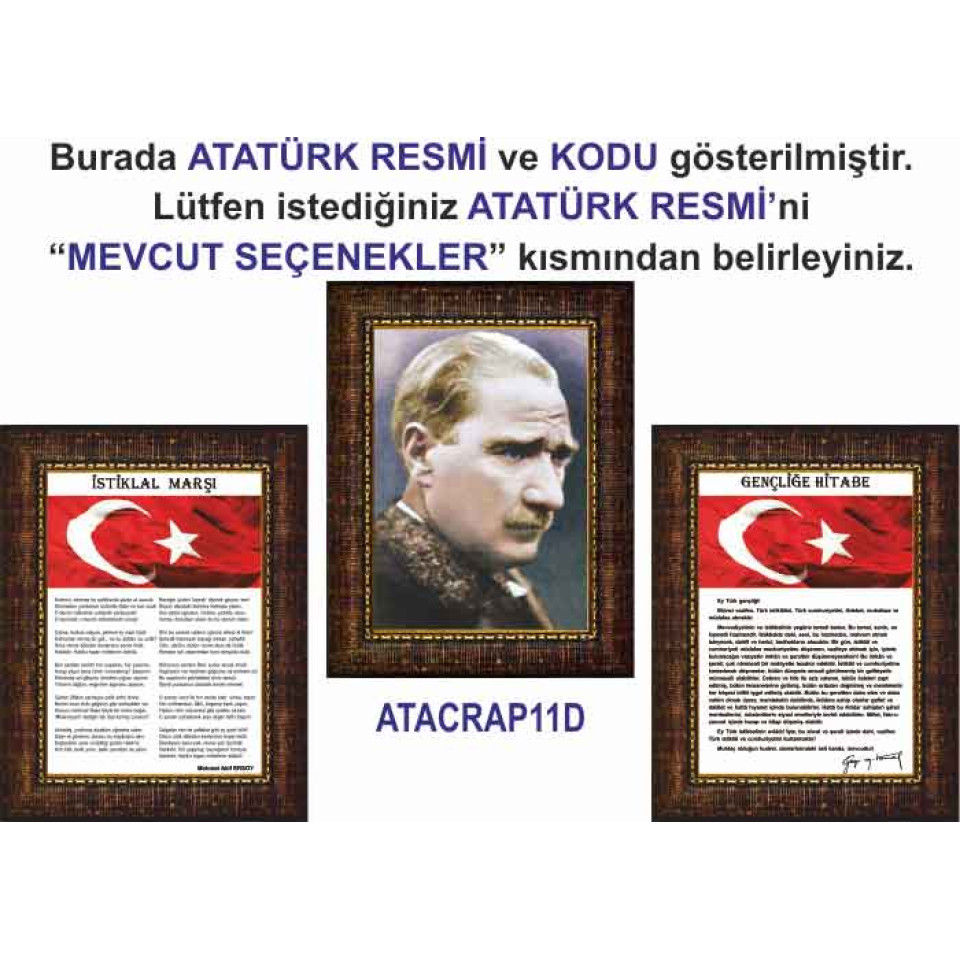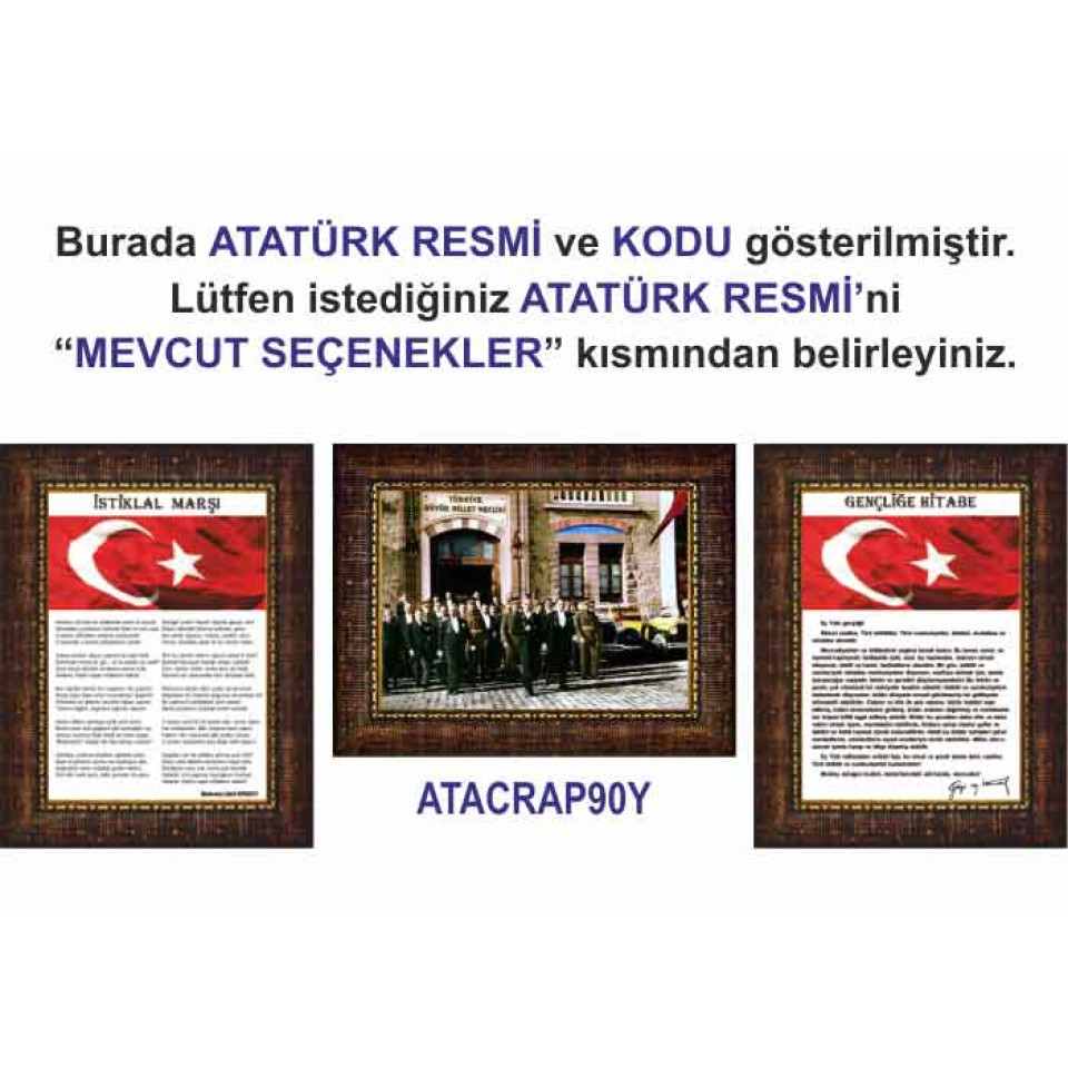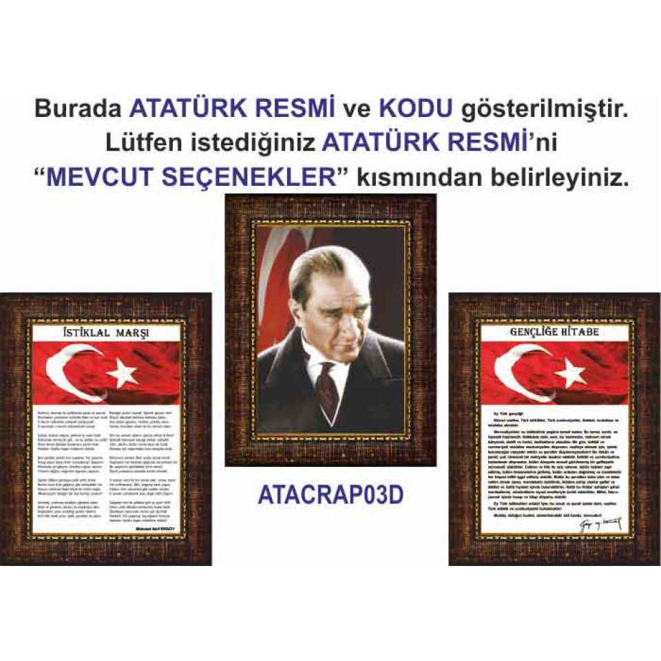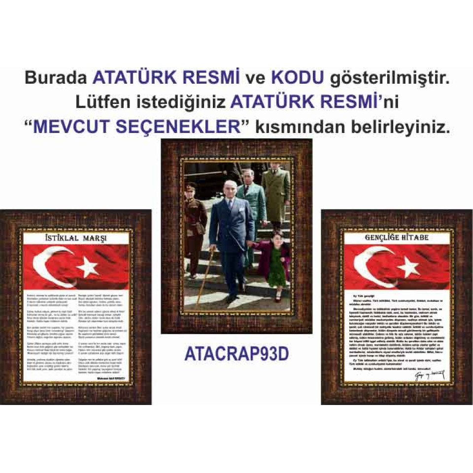 İstiklal Marşı ve Gençliğe Hitabe ve Atatürk Tablosu Çerçeveli Resim Üçlü Set ANICR41R3DY