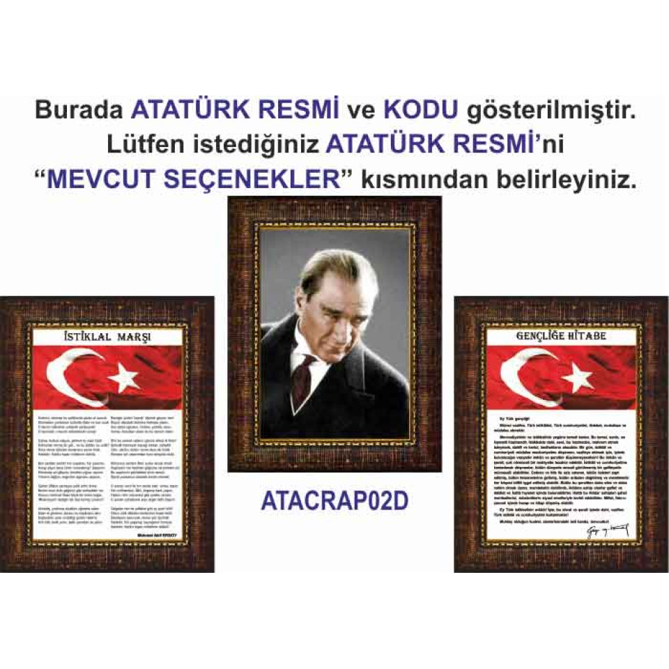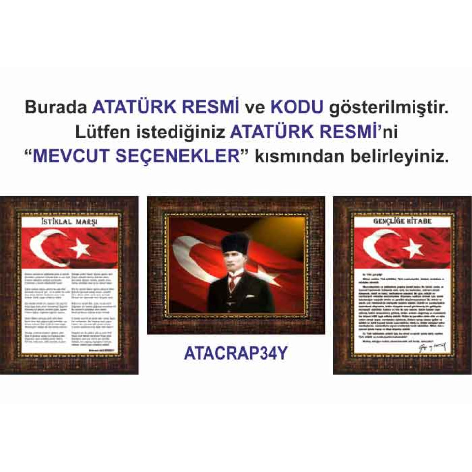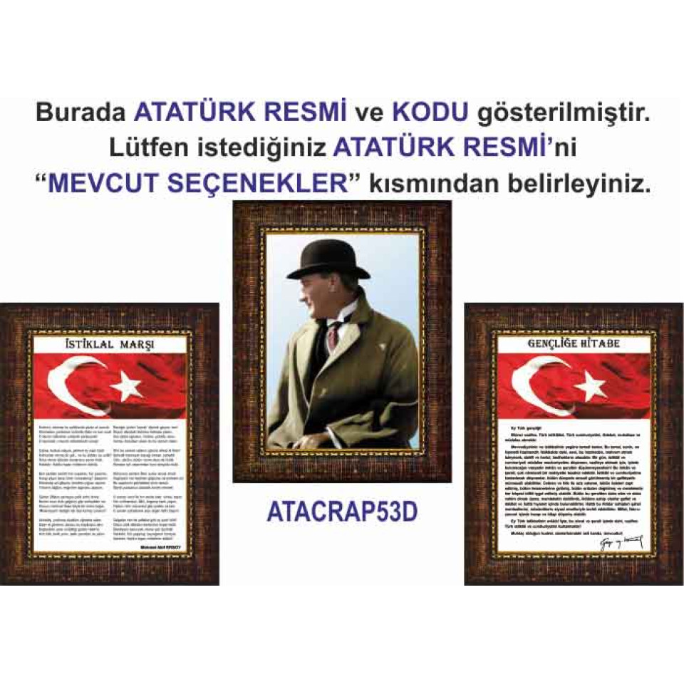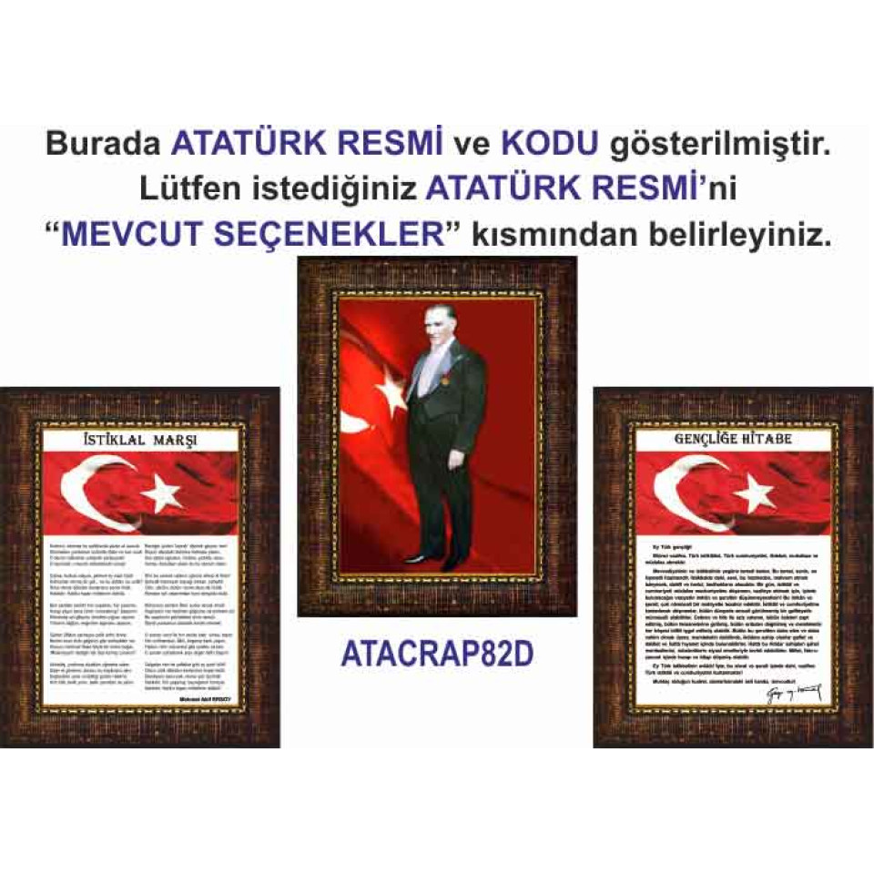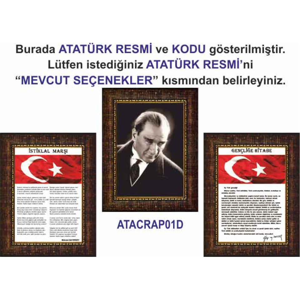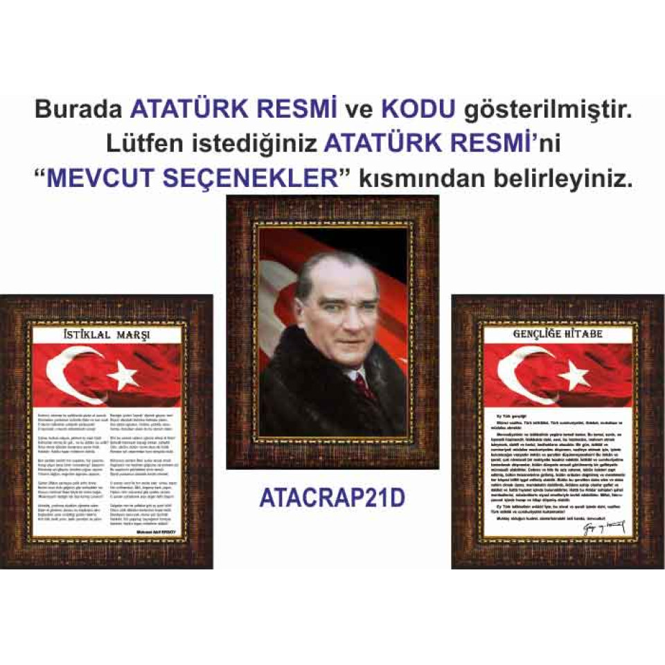 İstiklal Marşı ve Gençliğe Hitabe ve Atatürk Tablosu Çerçeveli Resim Üçlü Set ANICR41R3DY