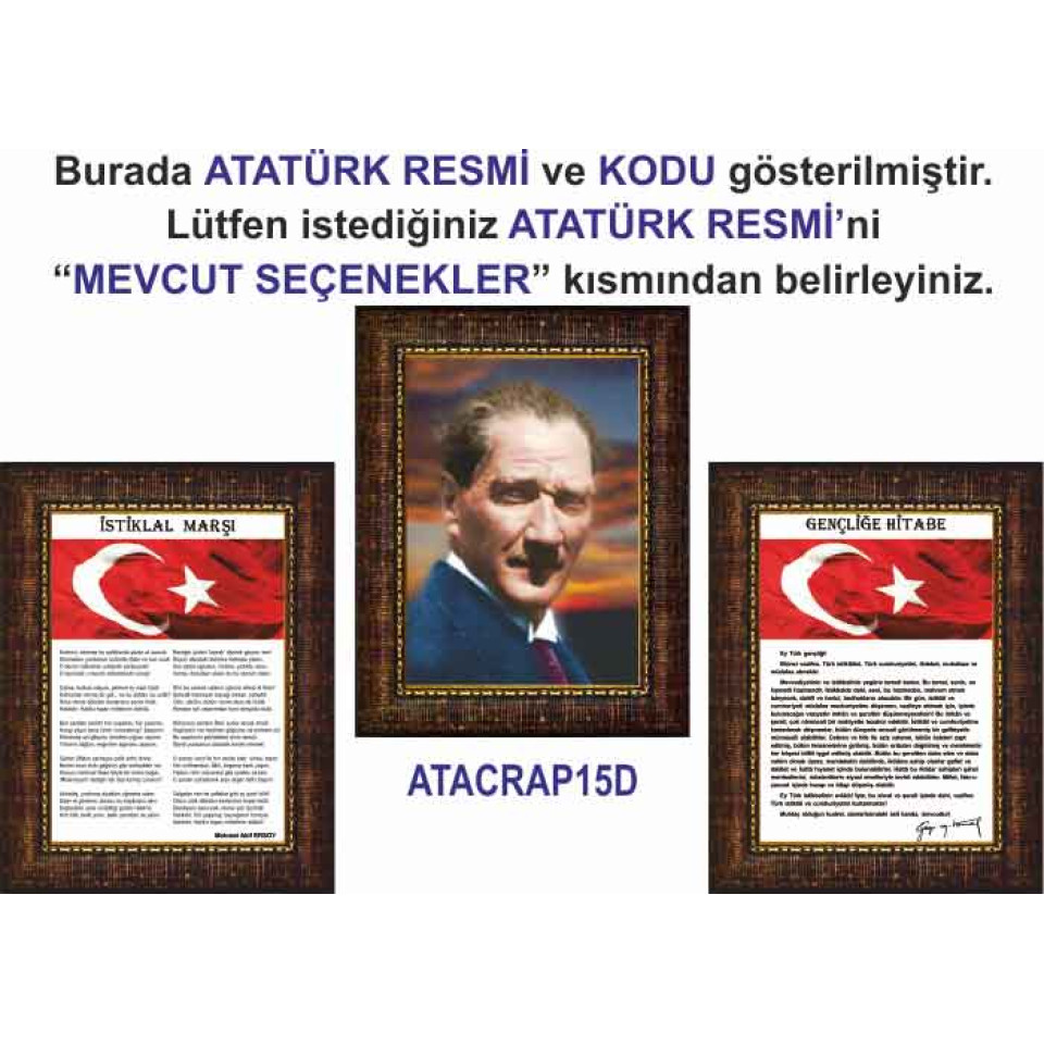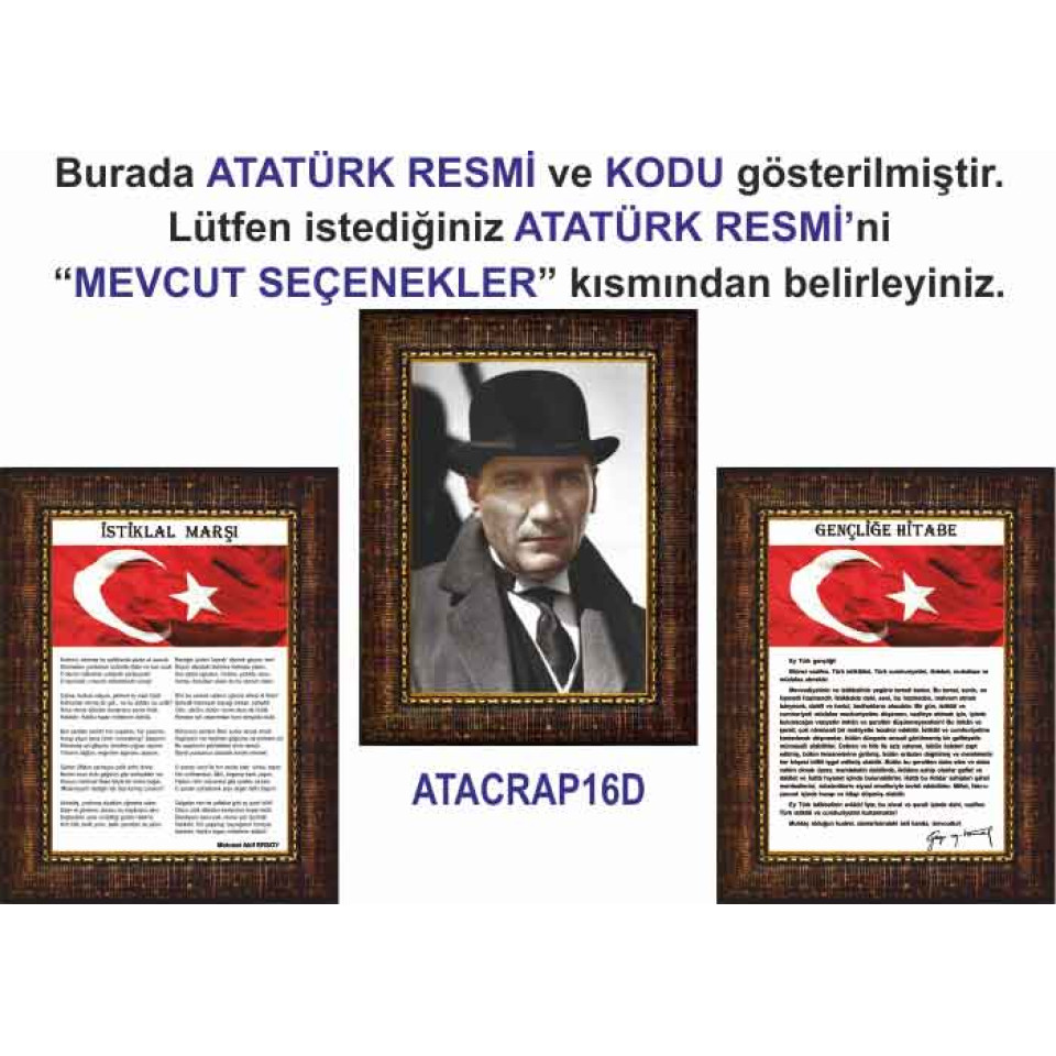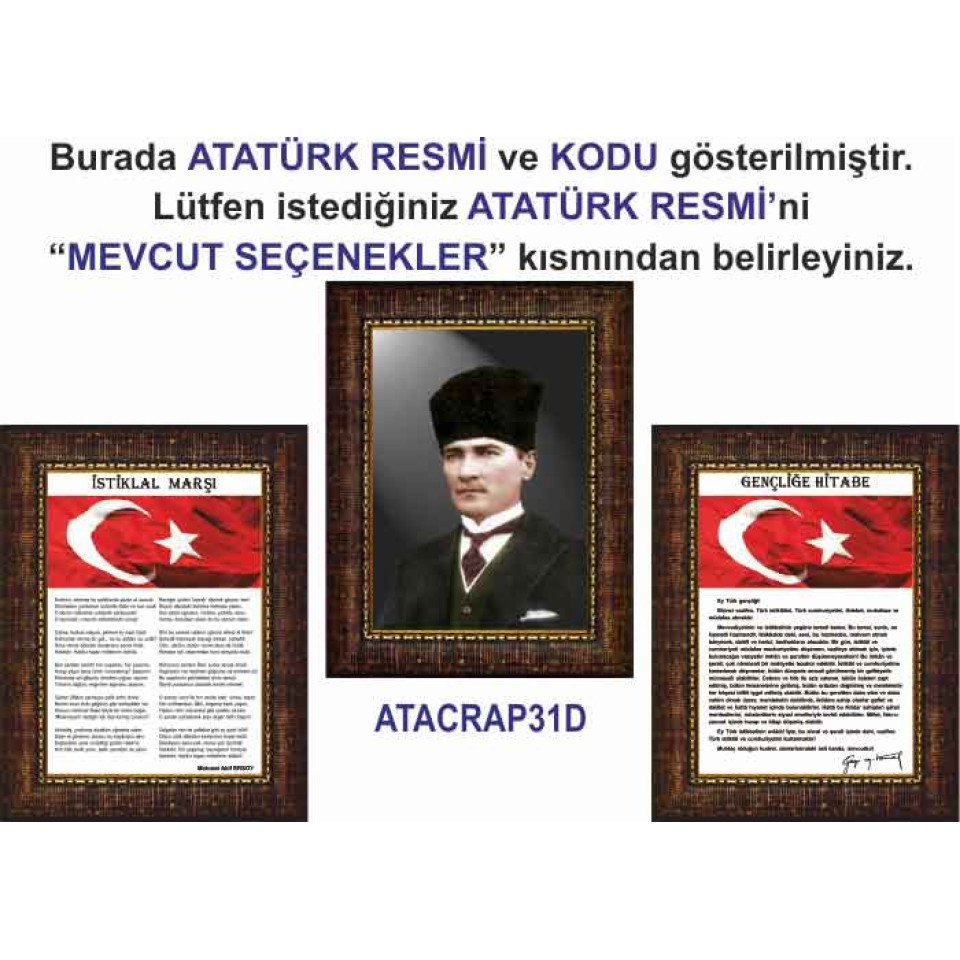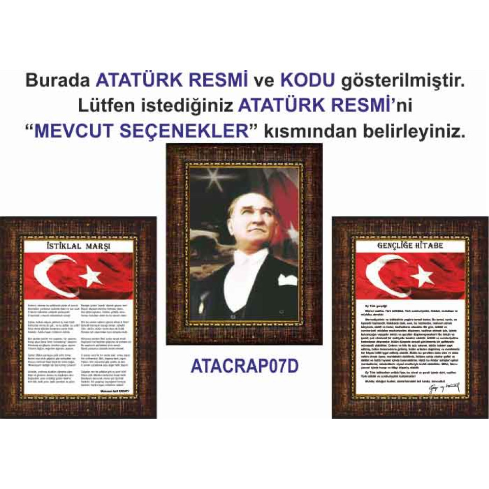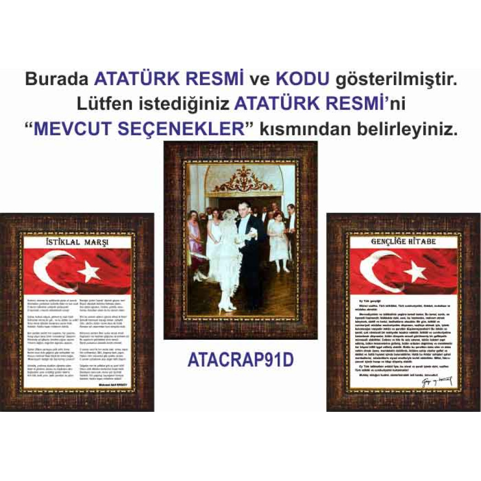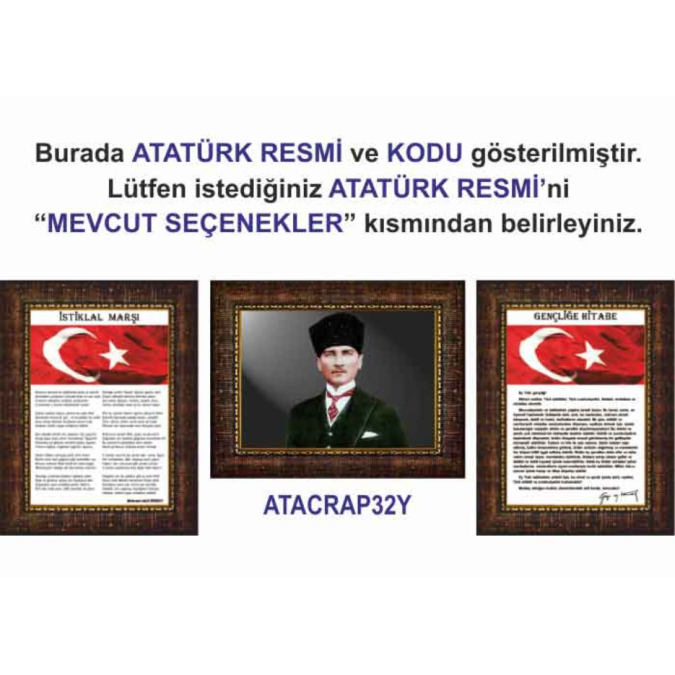 İstiklal Marşı ve Gençliğe Hitabe ve Atatürk Tablosu Çerçeveli Resim Üçlü Set ANICR41R3DY