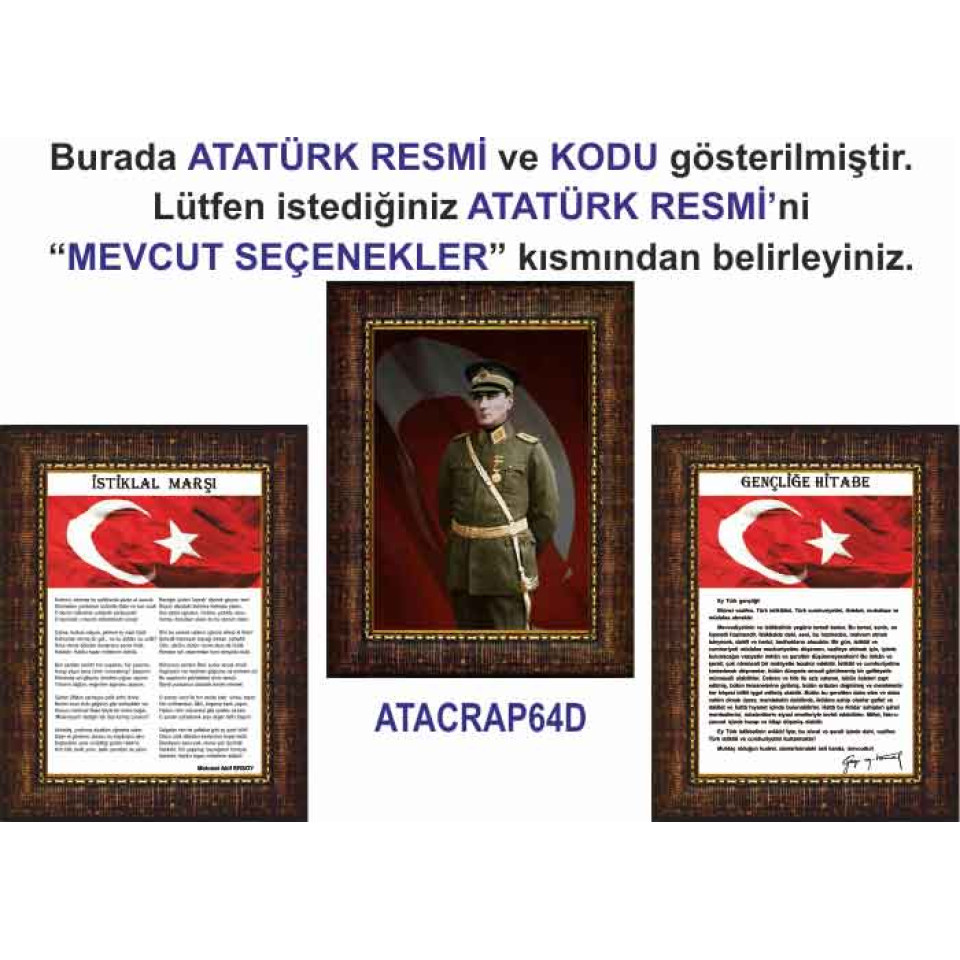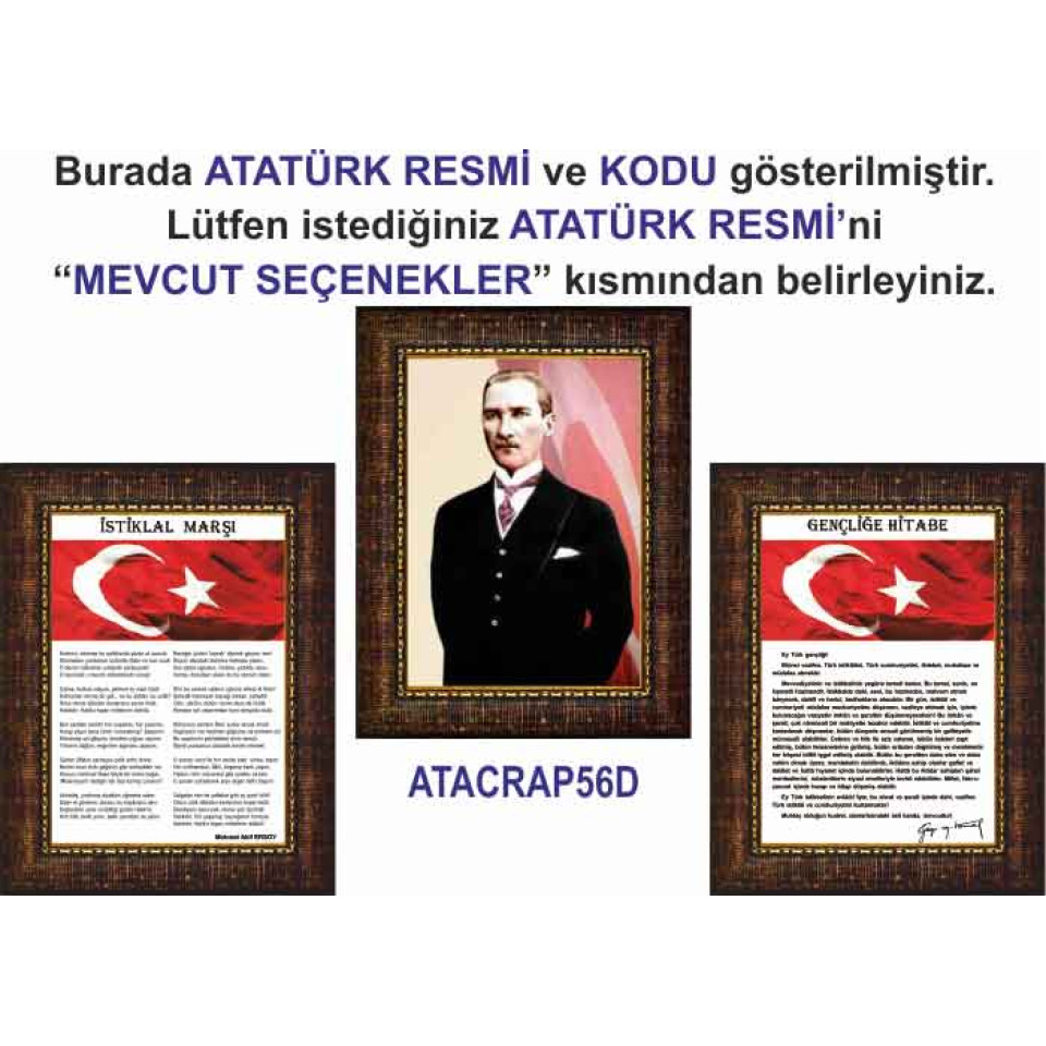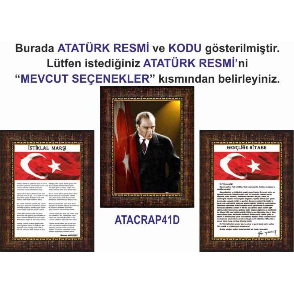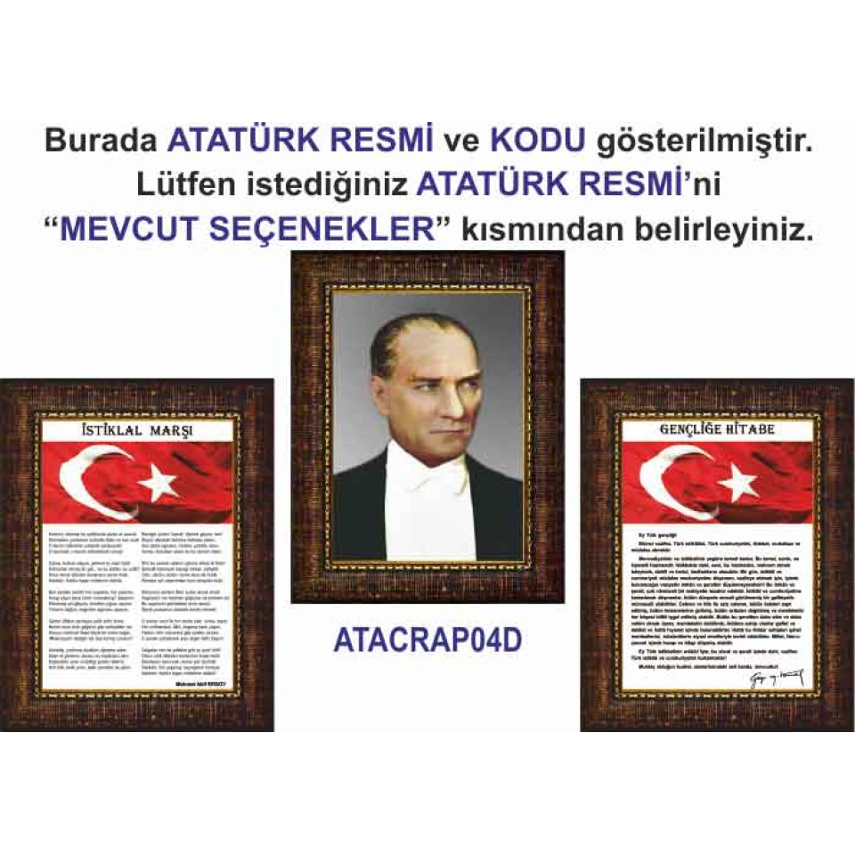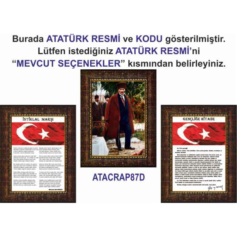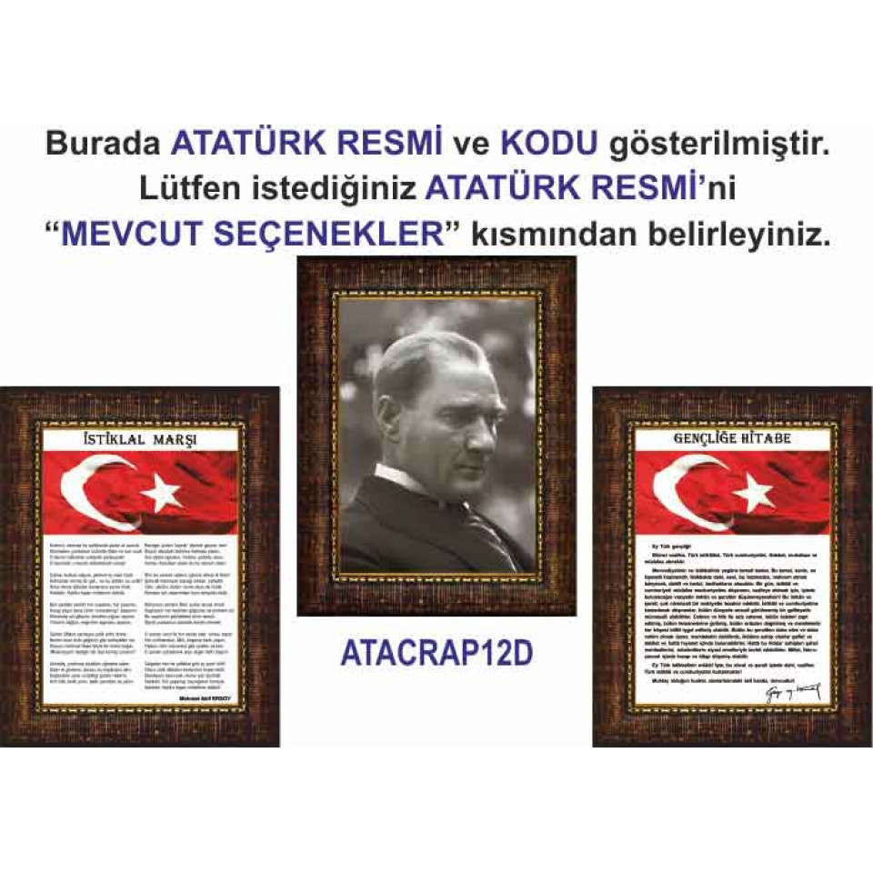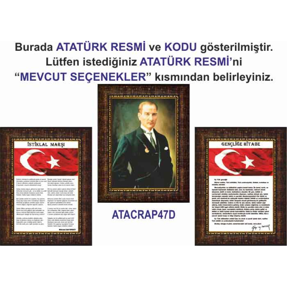 İstiklal Marşı ve Gençliğe Hitabe ve Atatürk Tablosu Çerçeveli Resim Üçlü Set ANICR41R3DY