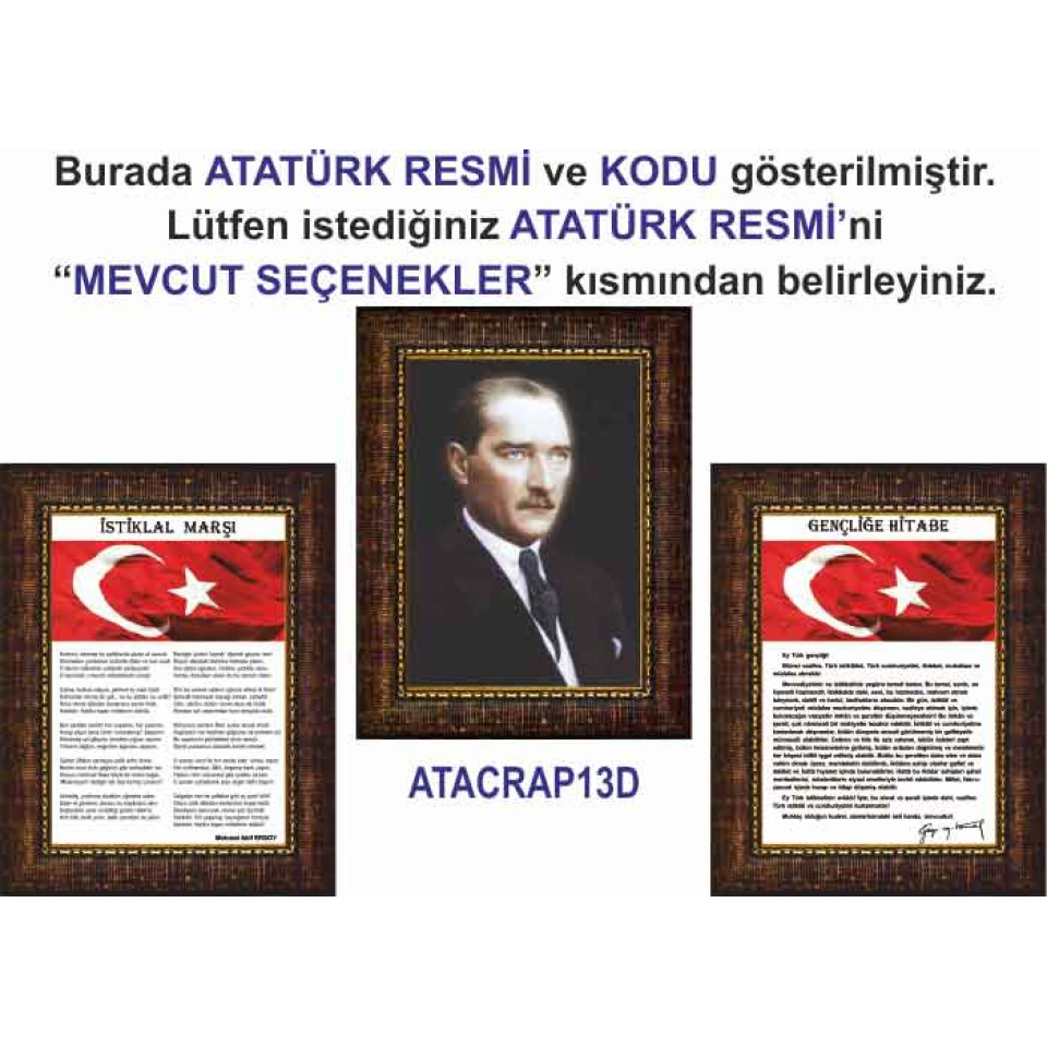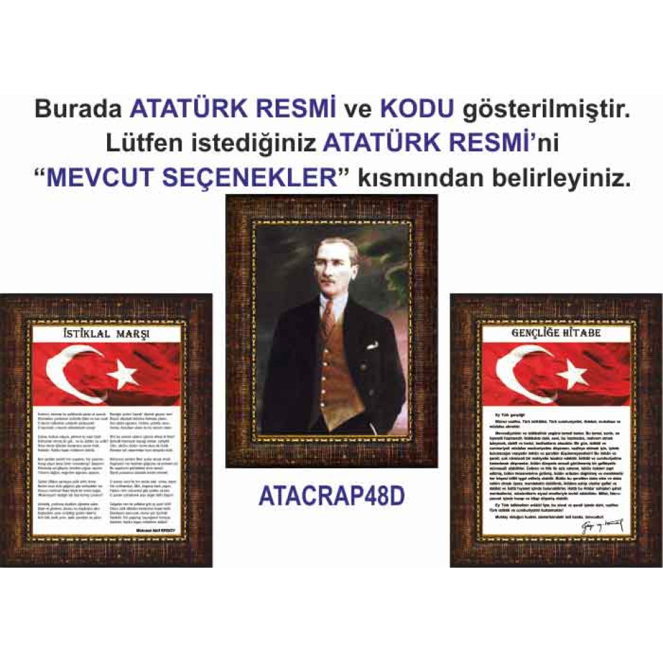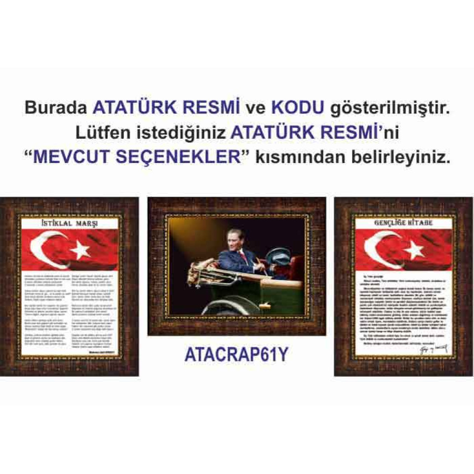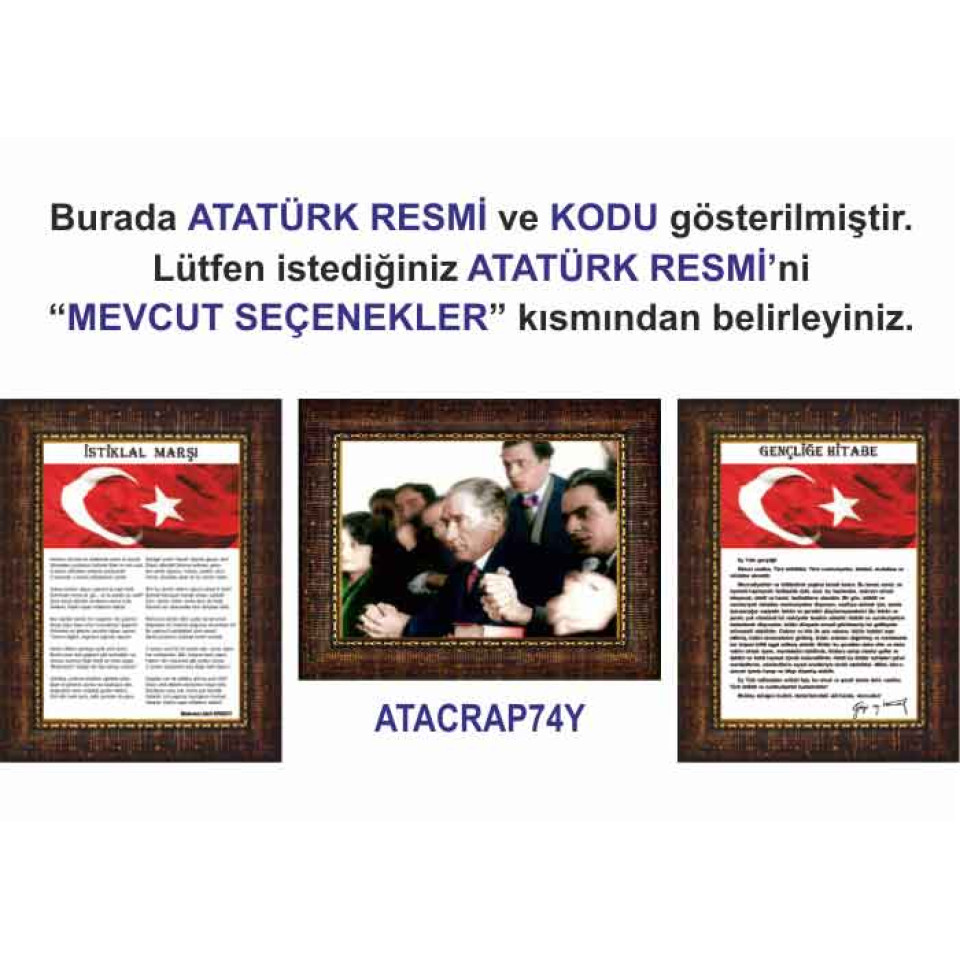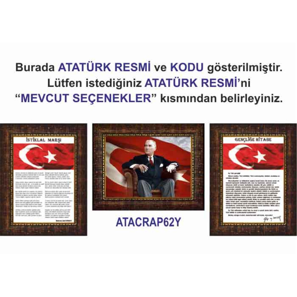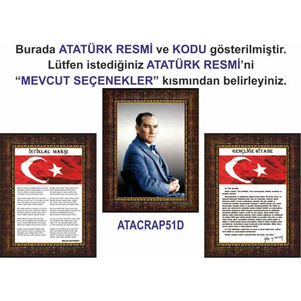 İstiklal Marşı ve Gençliğe Hitabe ve Atatürk Tablosu Çerçeveli Resim Üçlü Set ANICR41R3DY