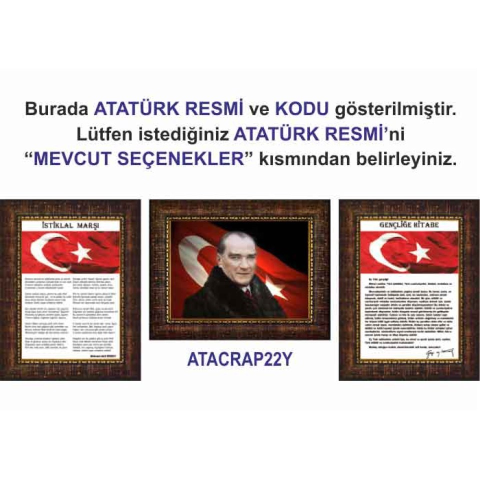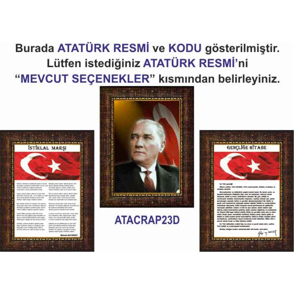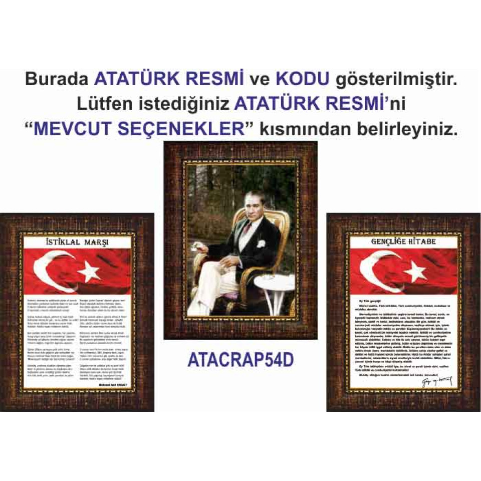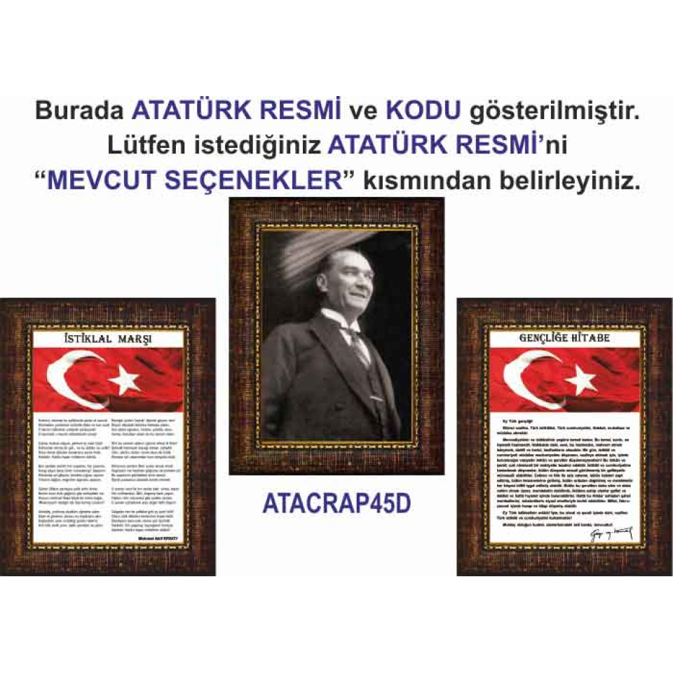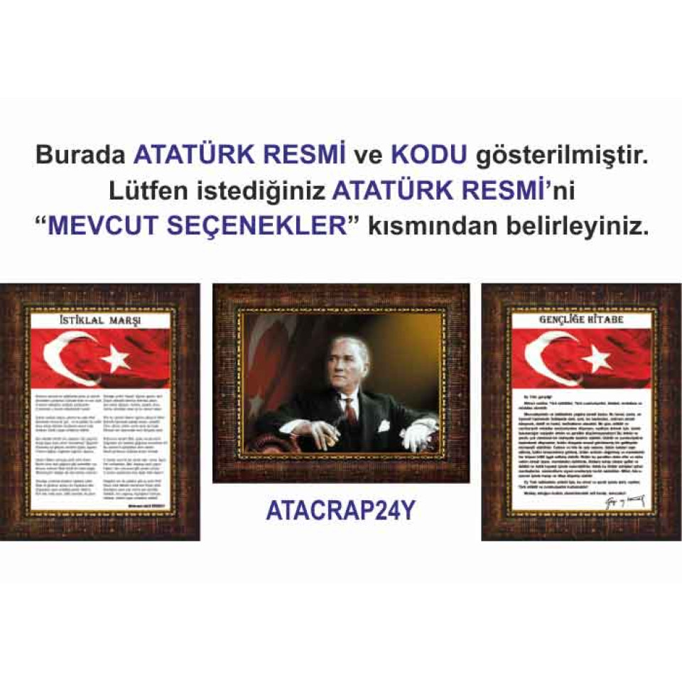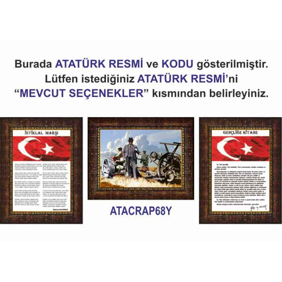 İstiklal Marşı ve Gençliğe Hitabe ve Atatürk Tablosu Çerçeveli Resim Üçlü Set ANICR41R3DY