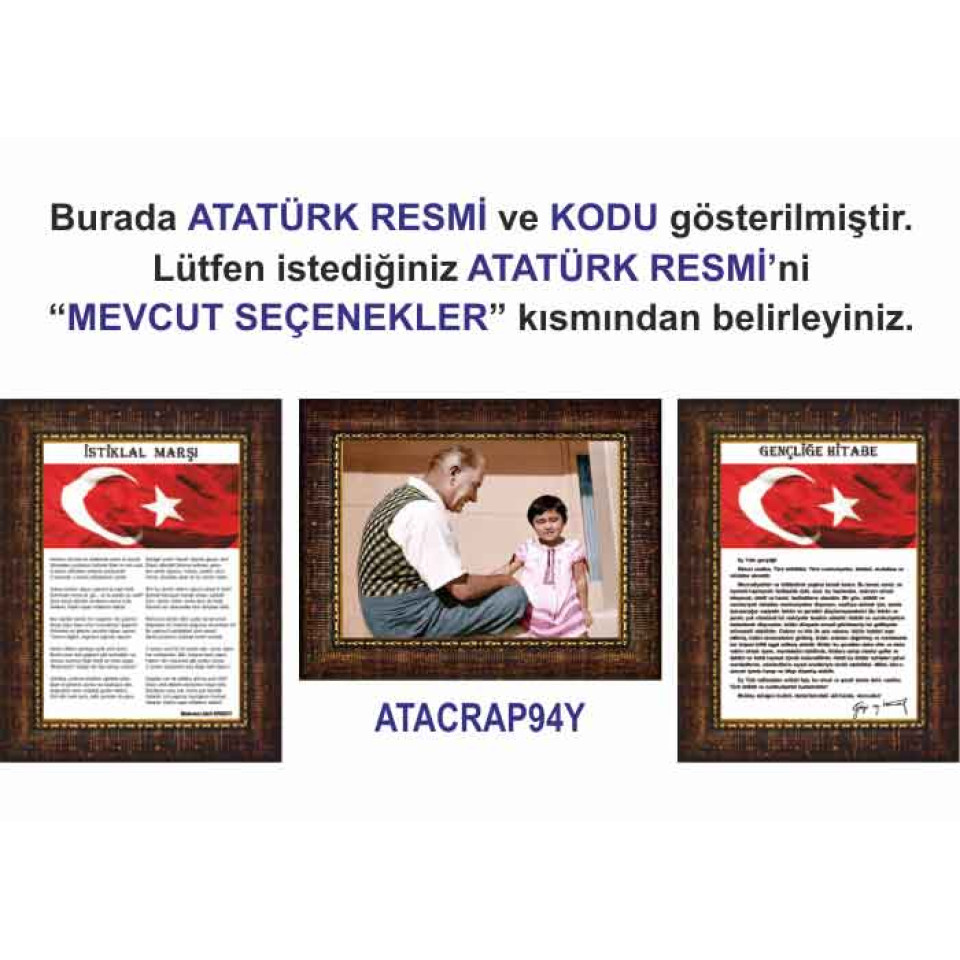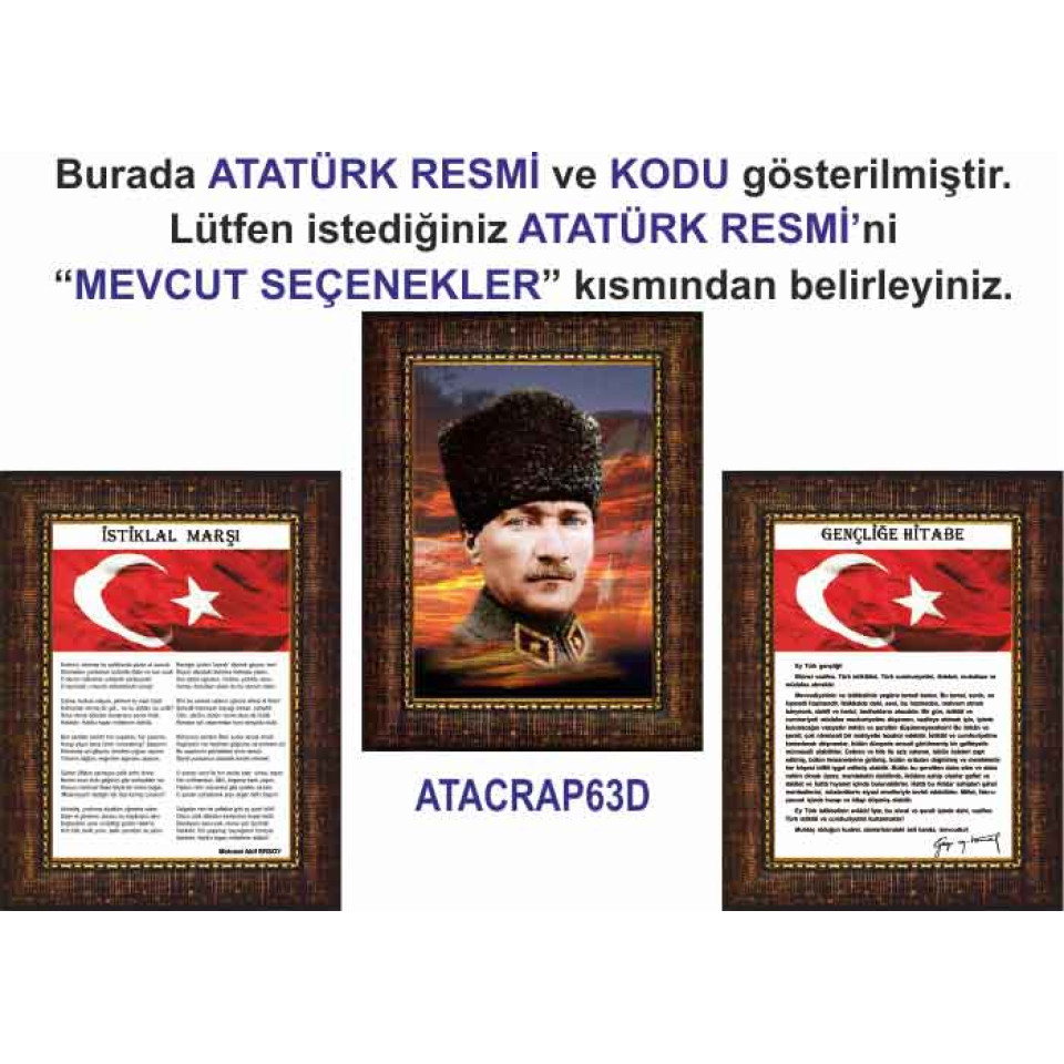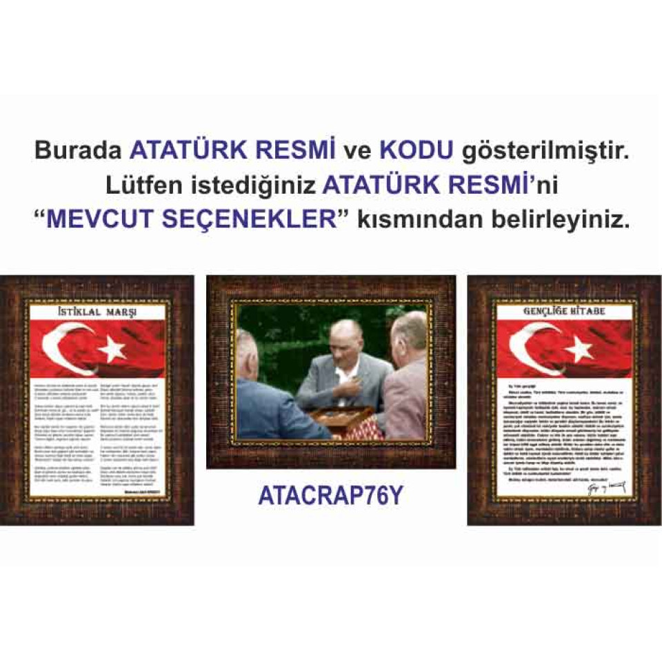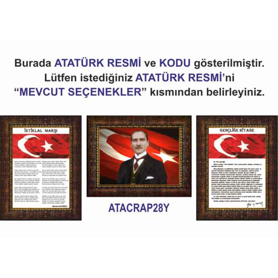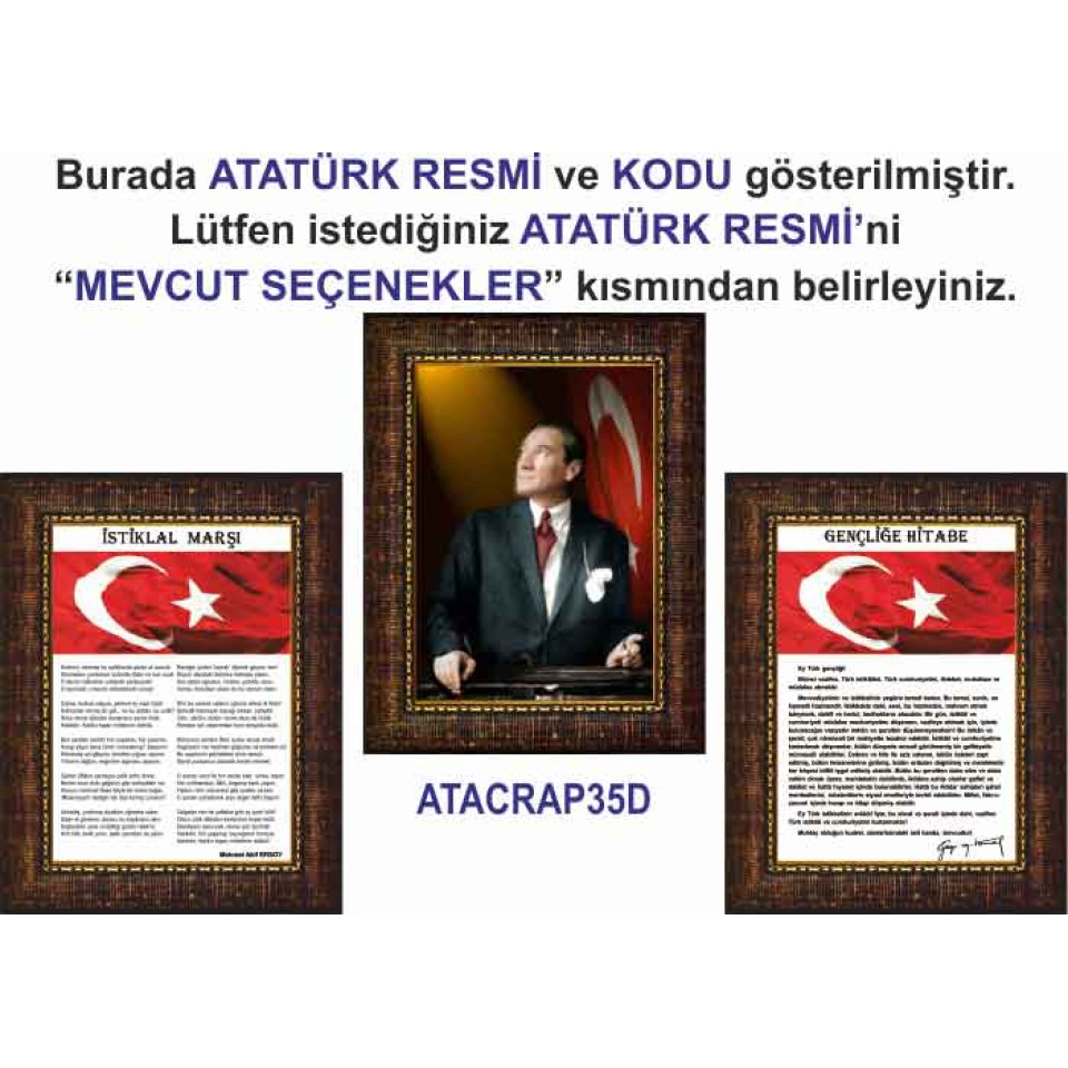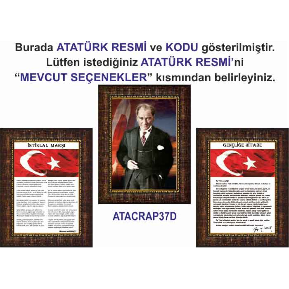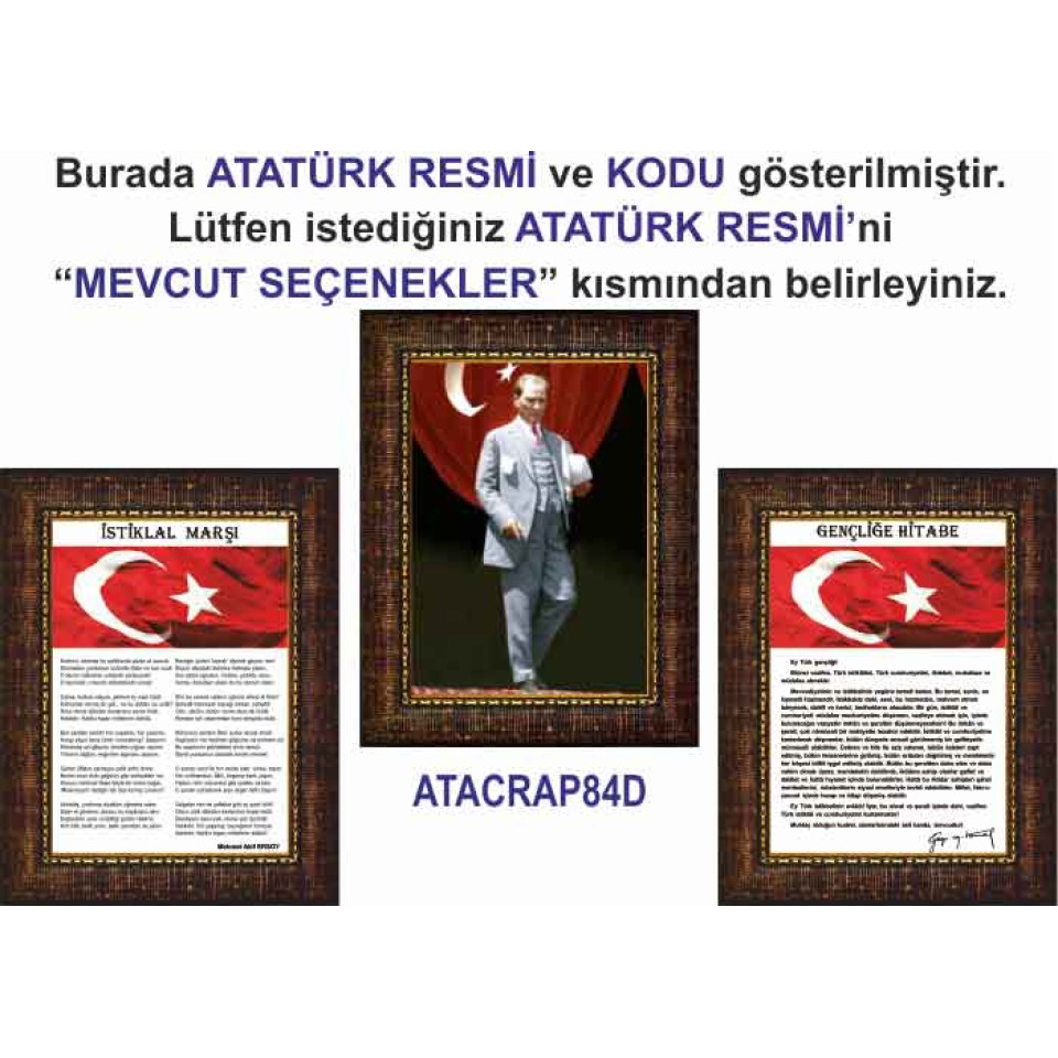 İstiklal Marşı ve Gençliğe Hitabe ve Atatürk Tablosu Çerçeveli Resim Üçlü Set ANICR41R3DY