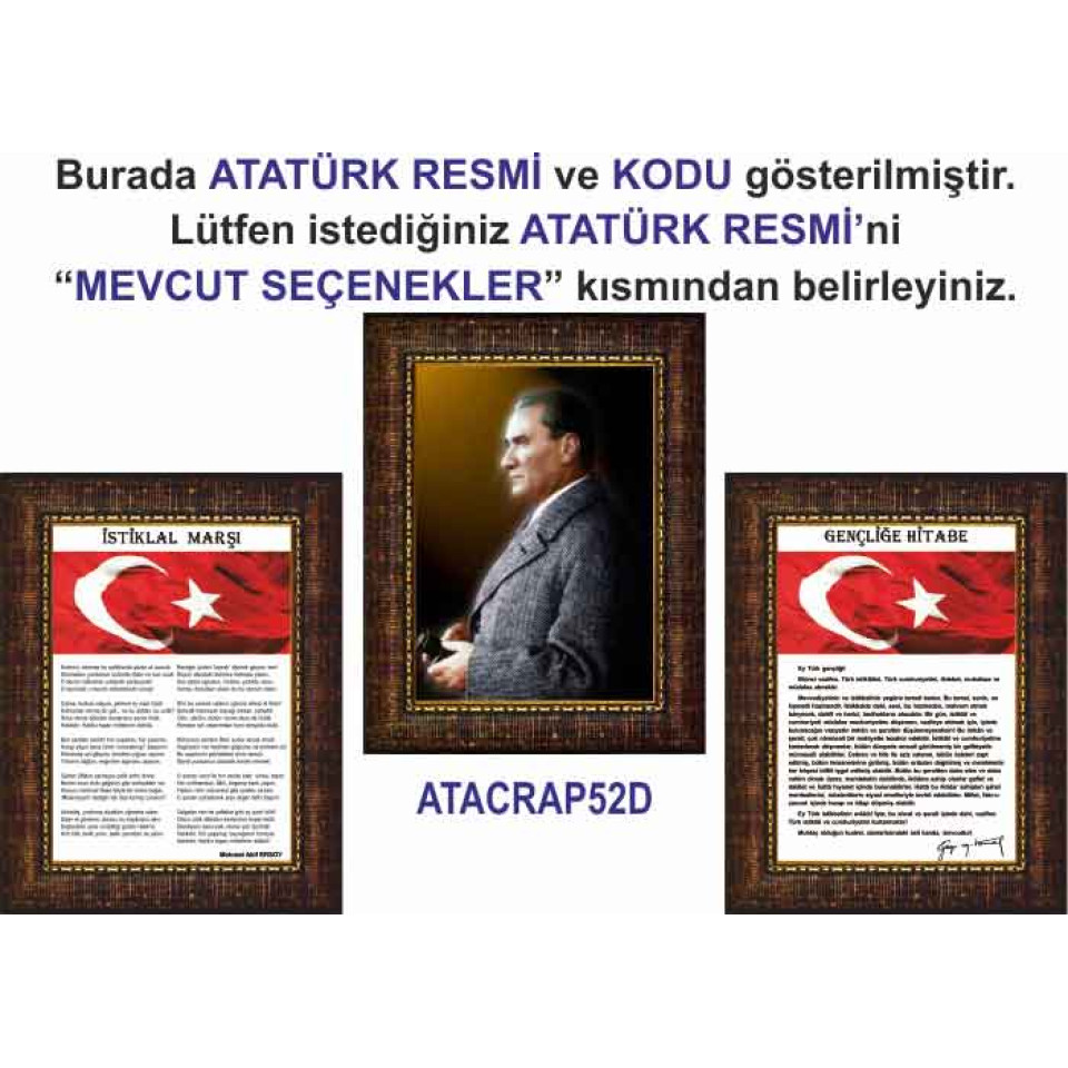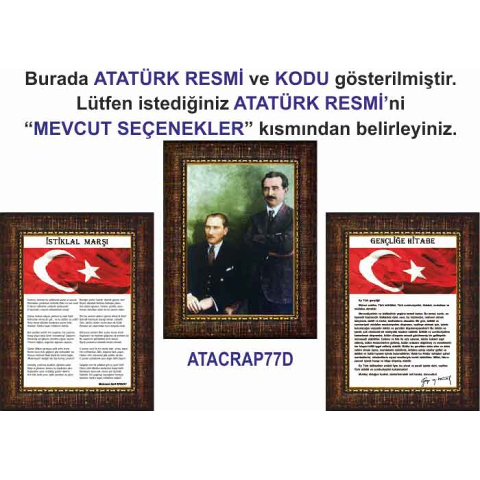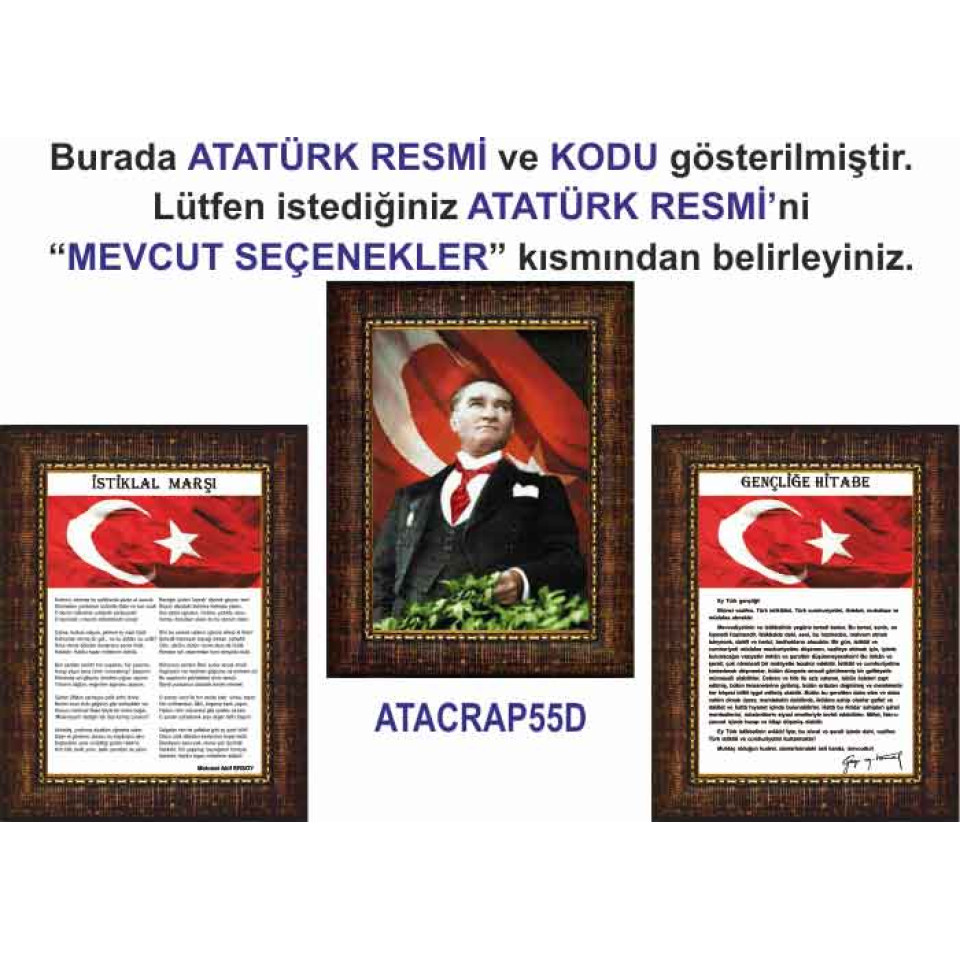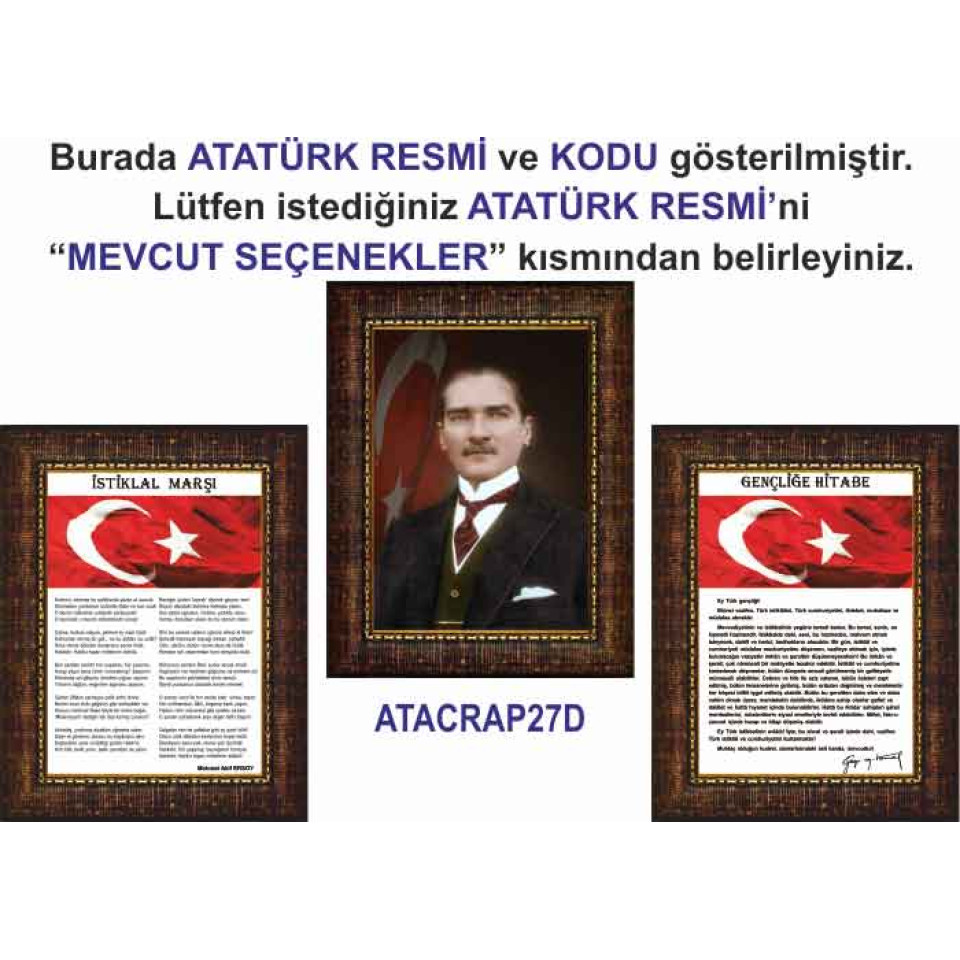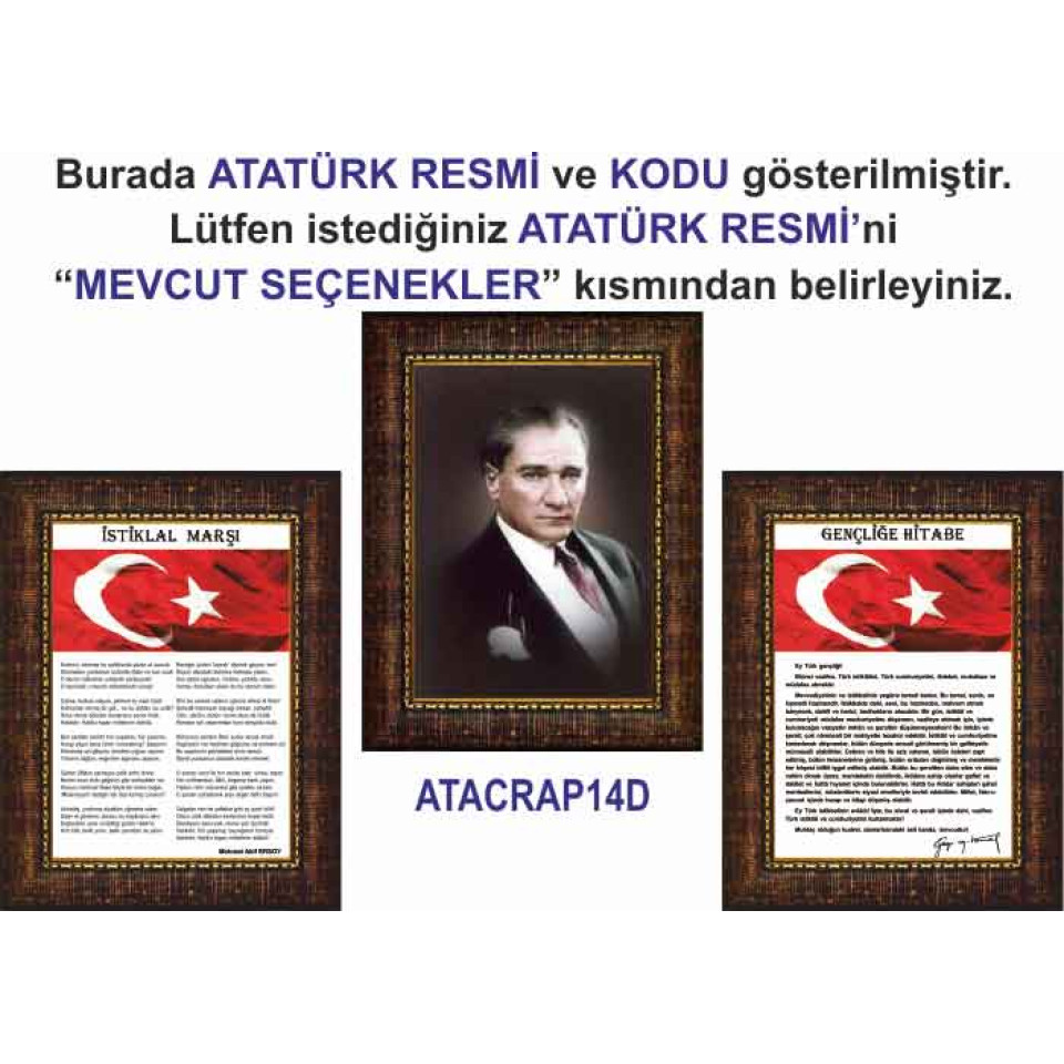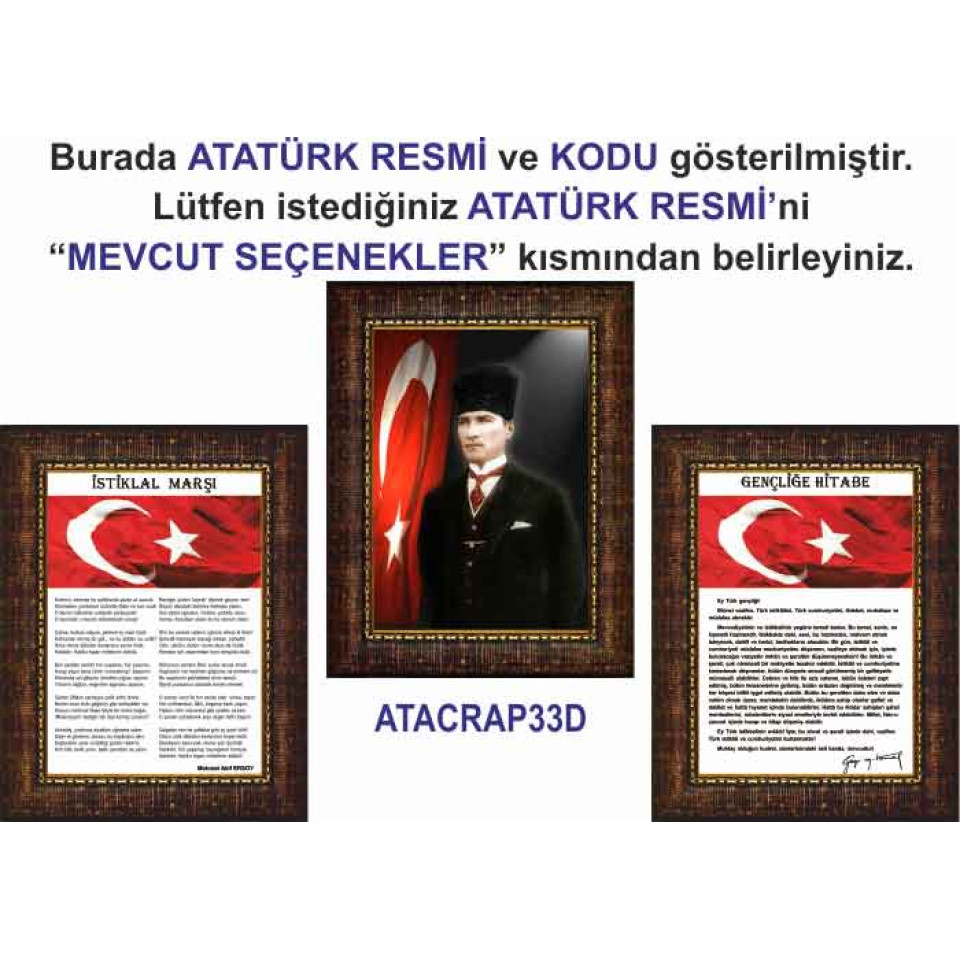 İstiklal Marşı ve Gençliğe Hitabe ve Atatürk Tablosu Çerçeveli Resim Üçlü Set ANICR41R3DY