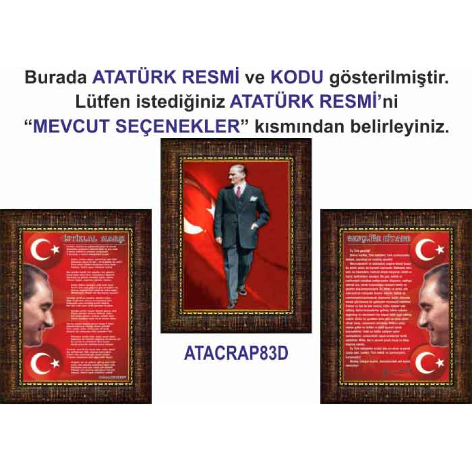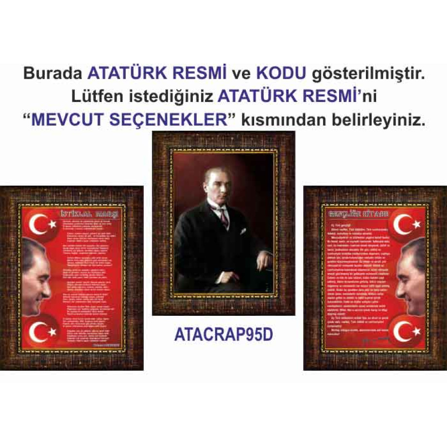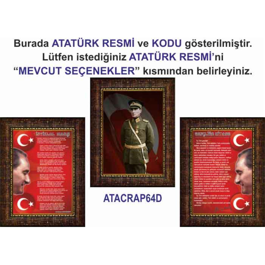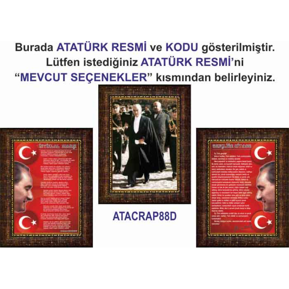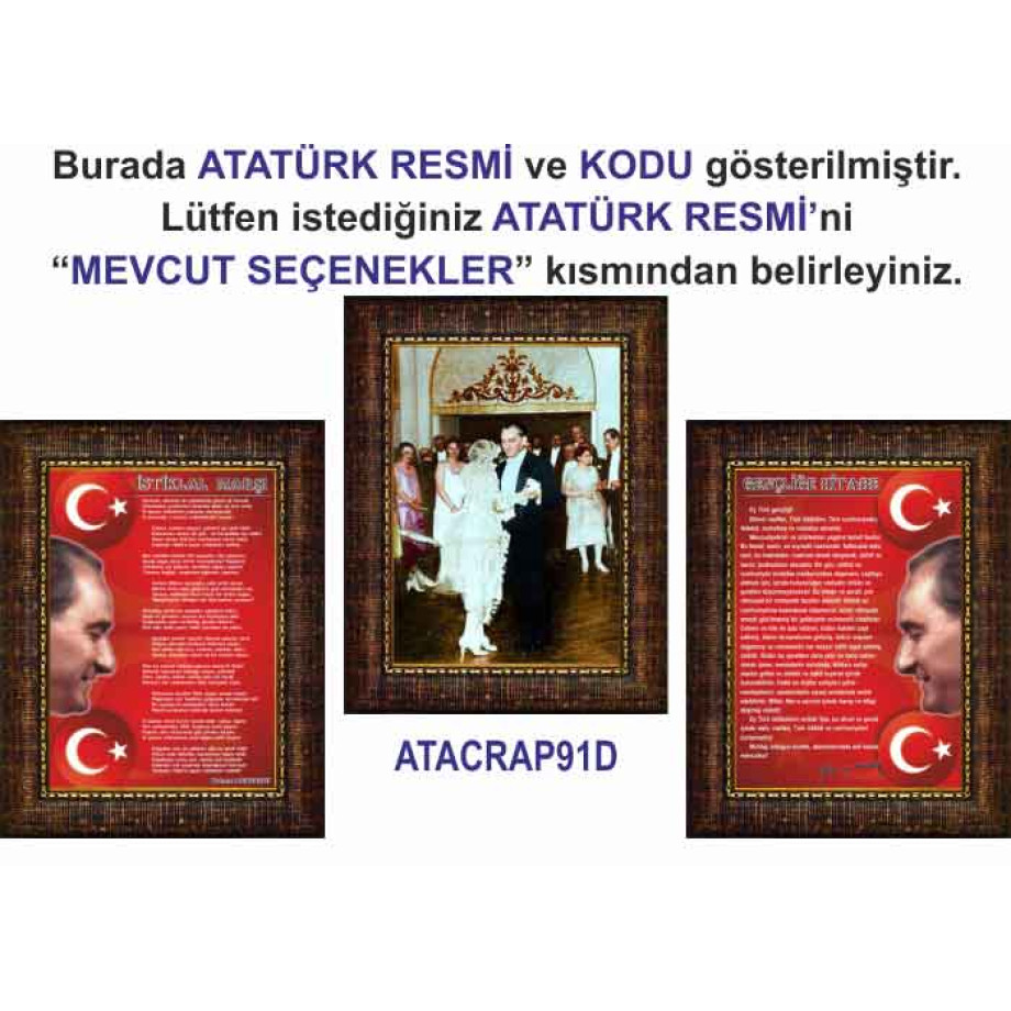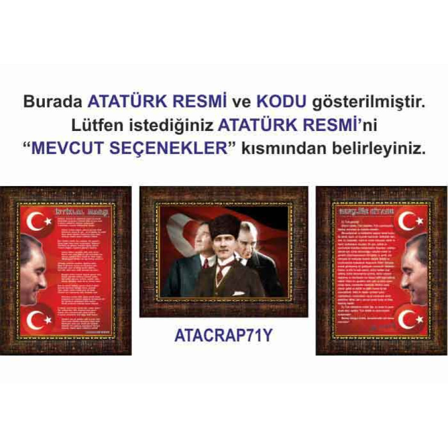 İstiklal Marşı ve Gençliğe Hitabe ve Atatürk Tablosu Çerçeveli Resim Üçlü Set ANICR44R3DY