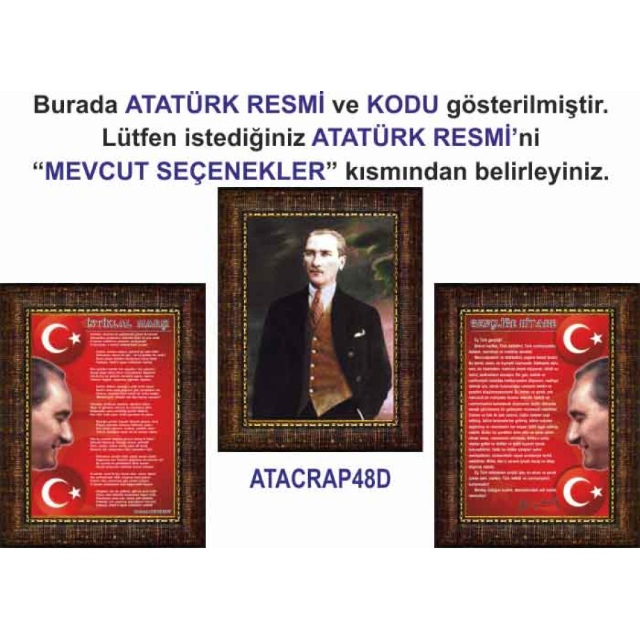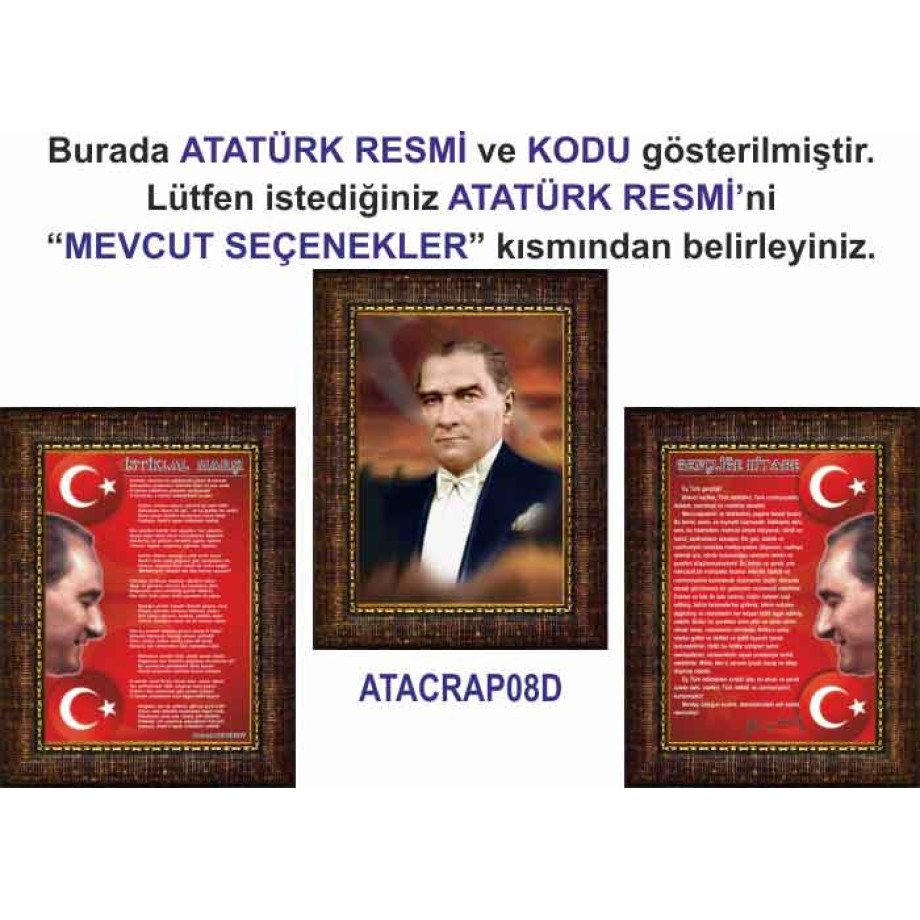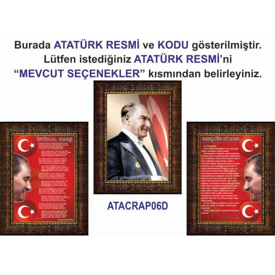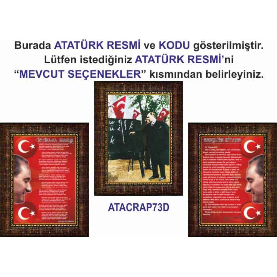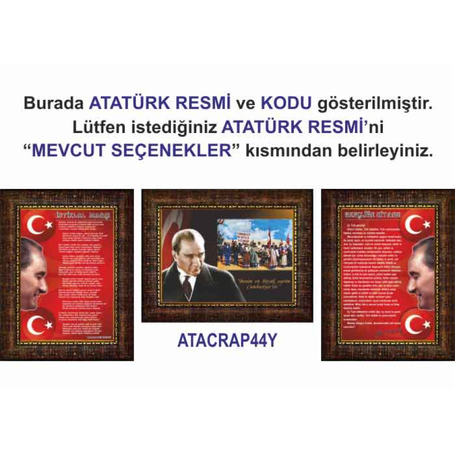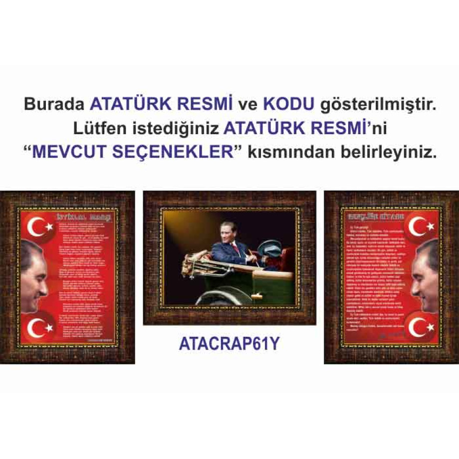 İstiklal Marşı ve Gençliğe Hitabe ve Atatürk Tablosu Çerçeveli Resim Üçlü Set ANICR44R3DY