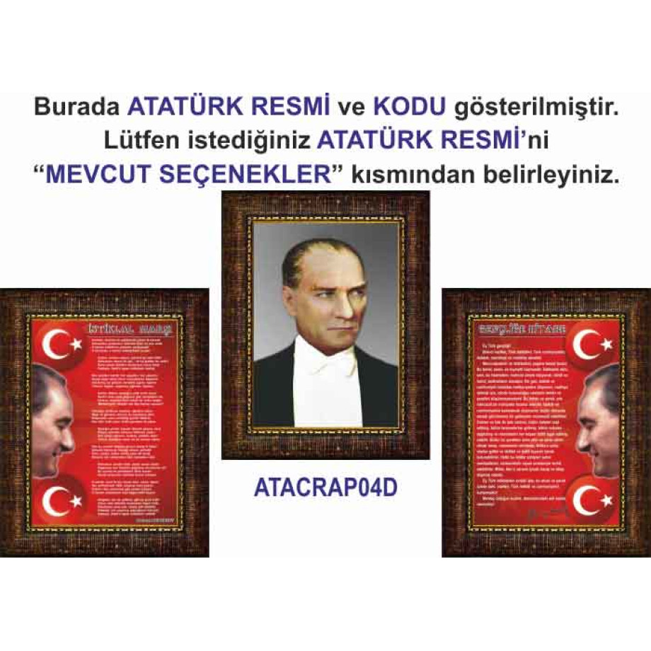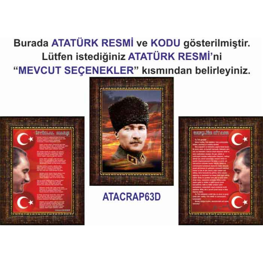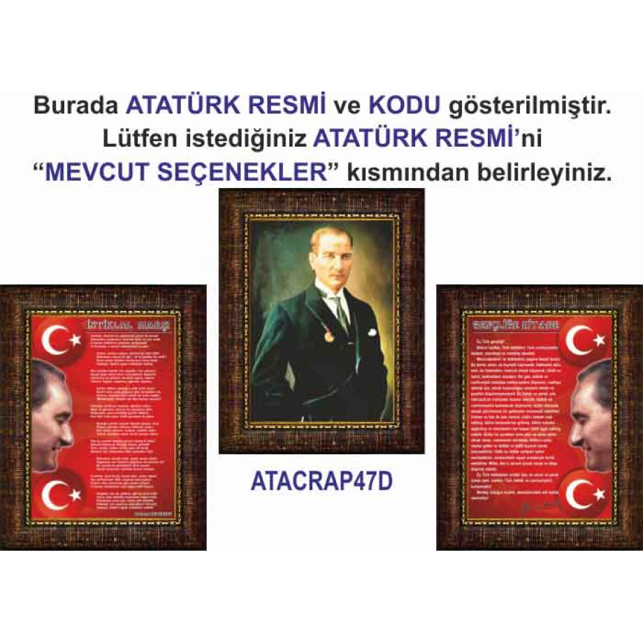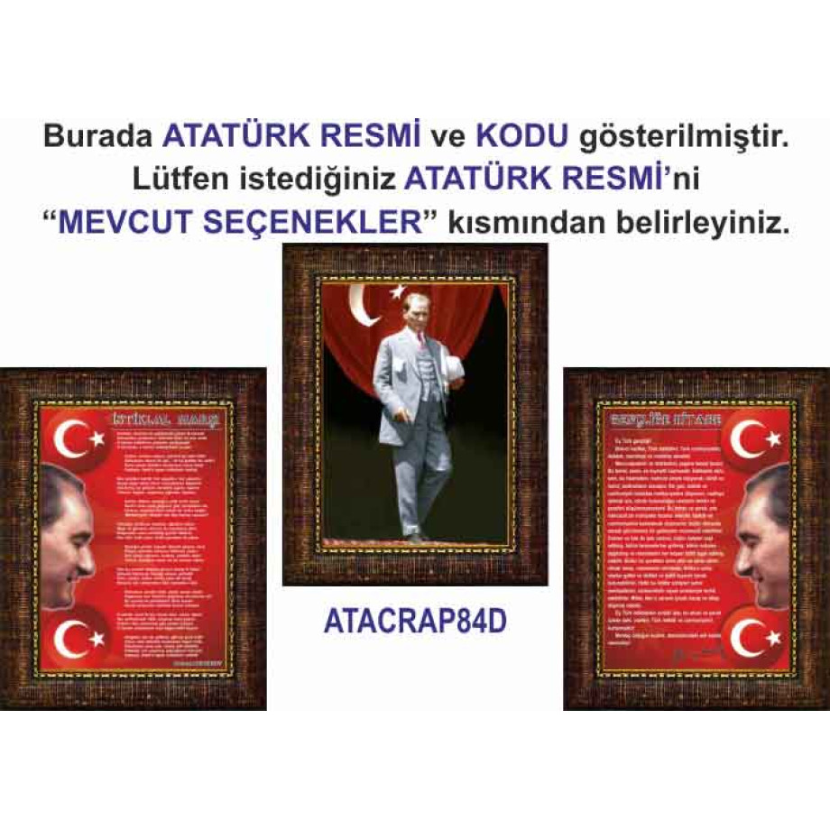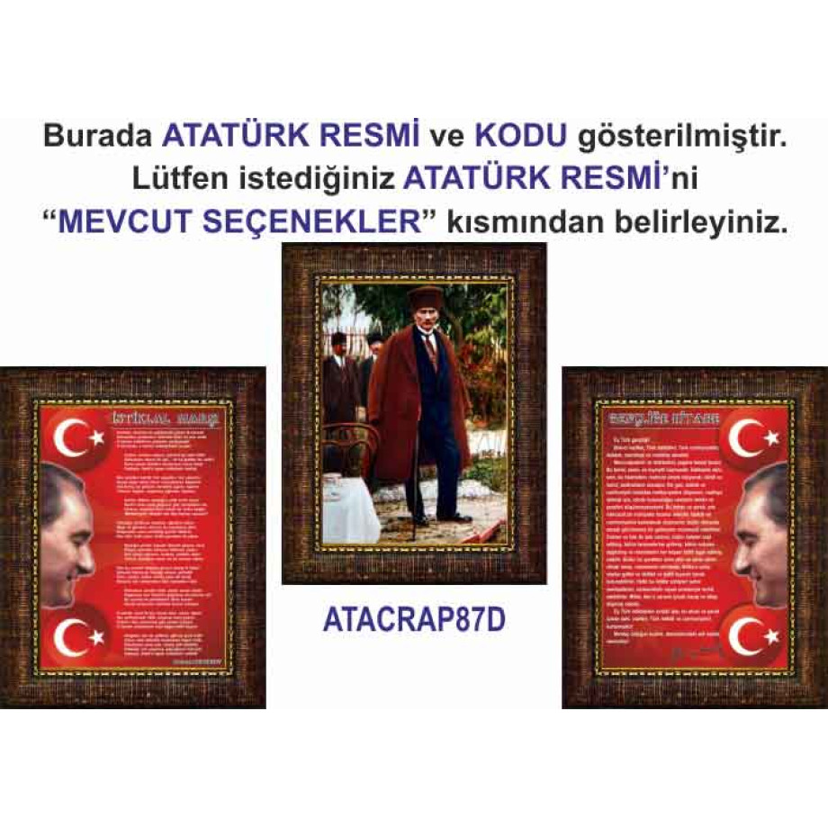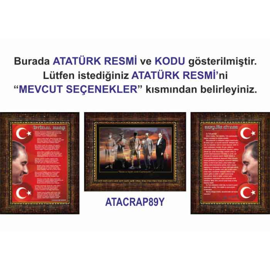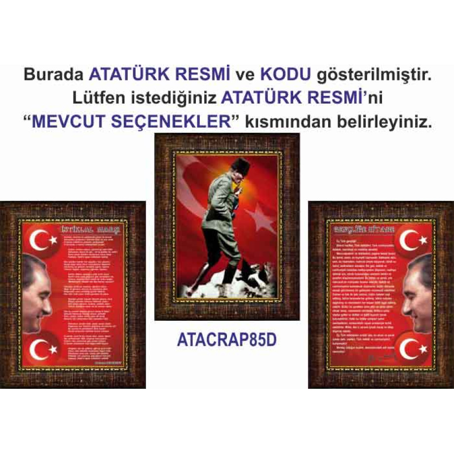 İstiklal Marşı ve Gençliğe Hitabe ve Atatürk Tablosu Çerçeveli Resim Üçlü Set ANICR44R3DY