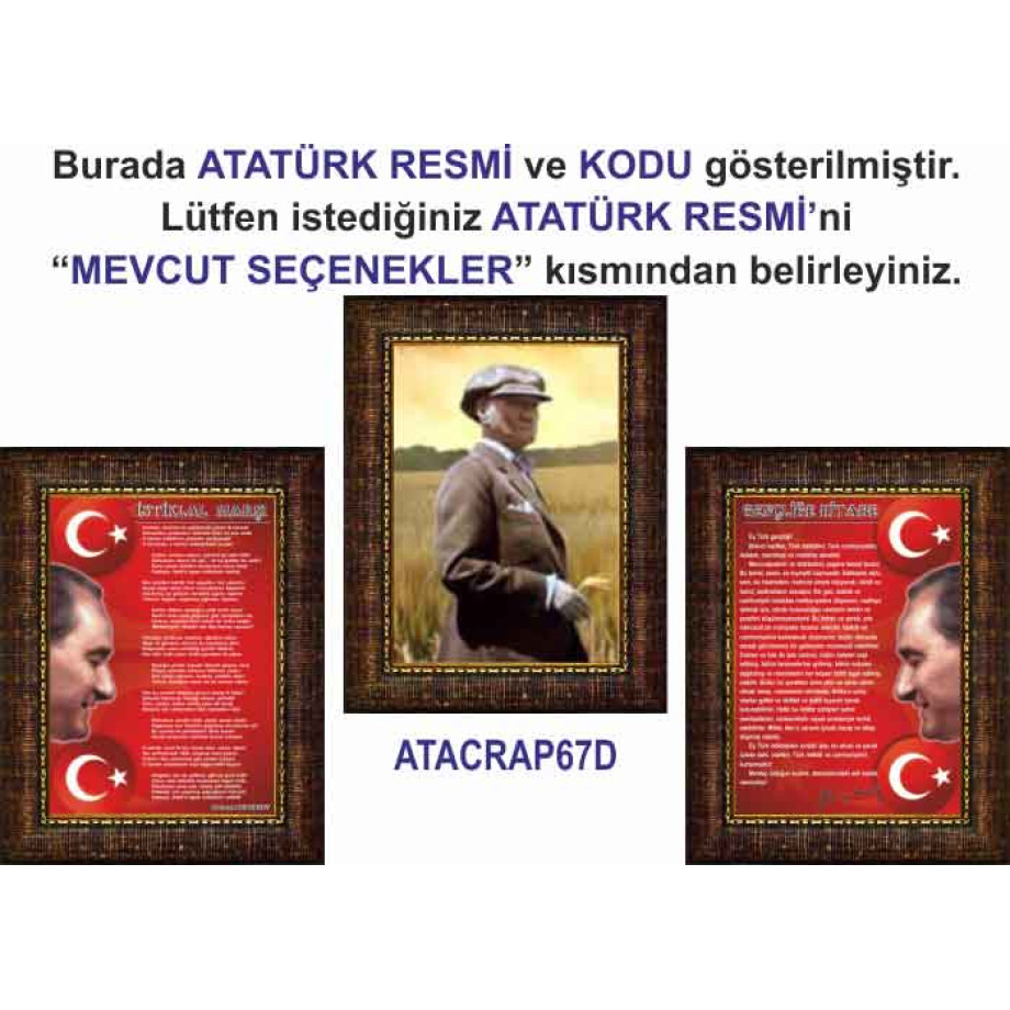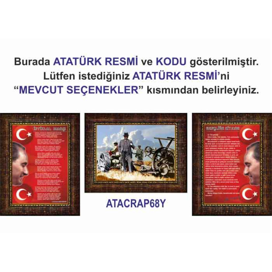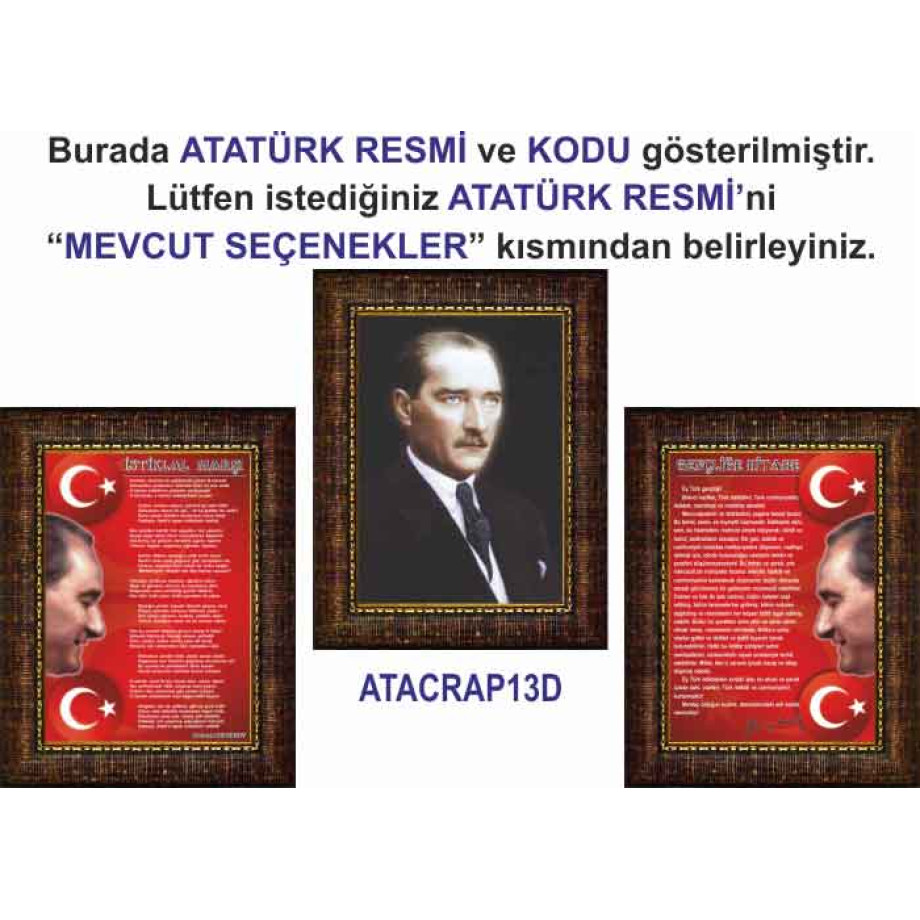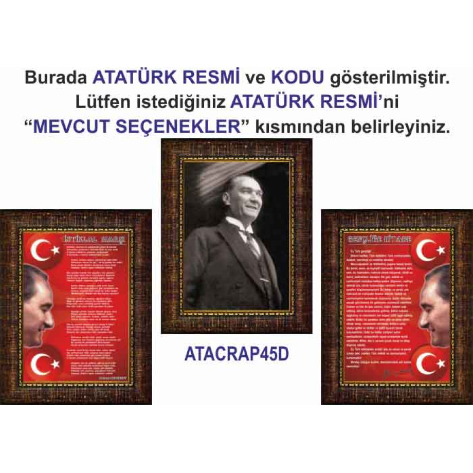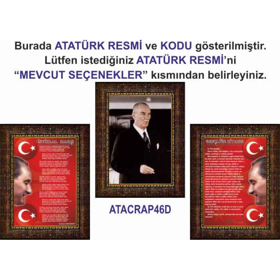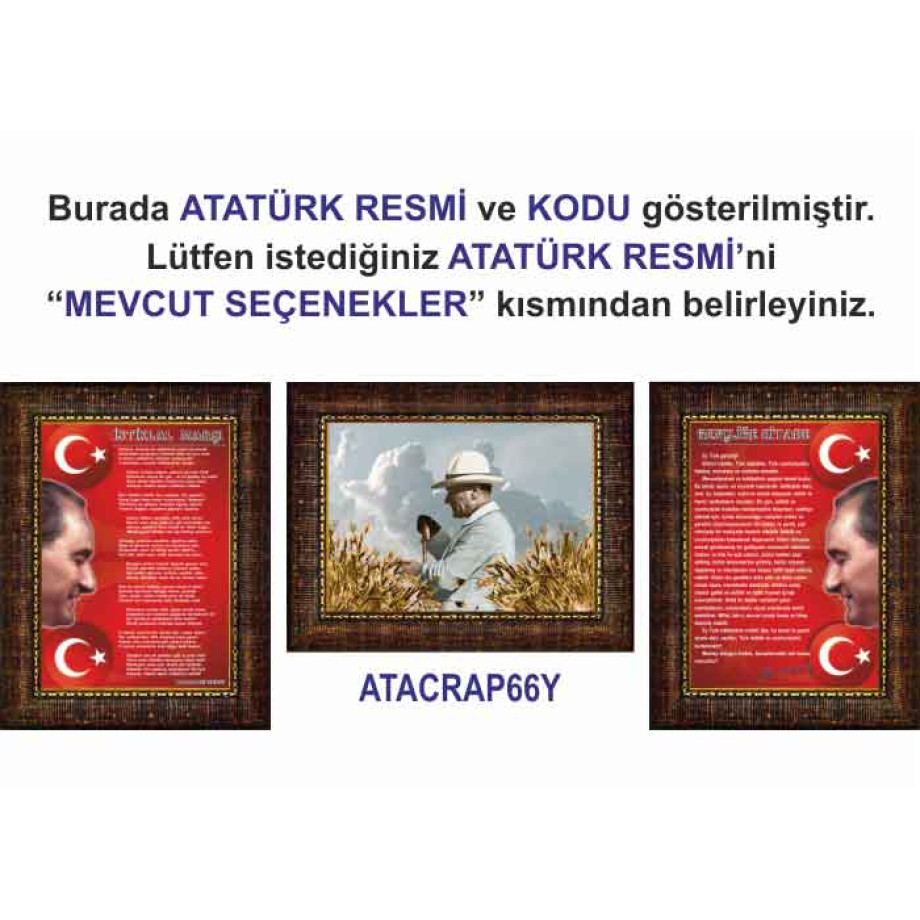 İstiklal Marşı ve Gençliğe Hitabe ve Atatürk Tablosu Çerçeveli Resim Üçlü Set ANICR44R3DY
