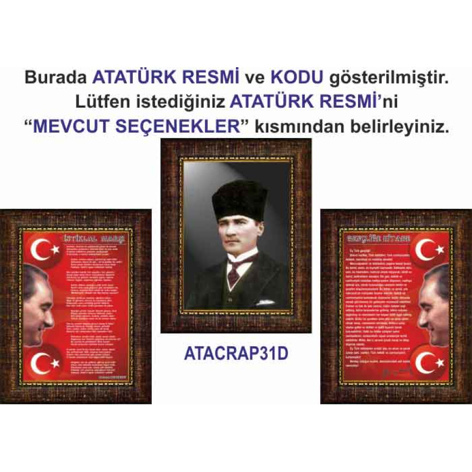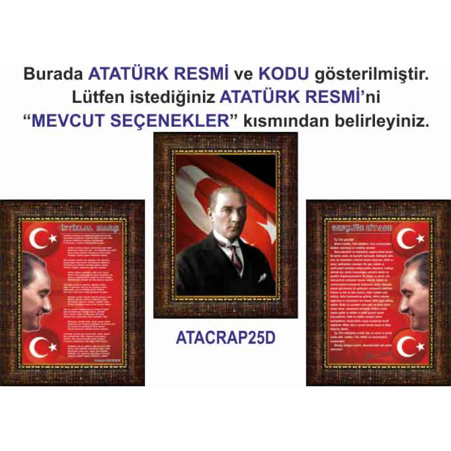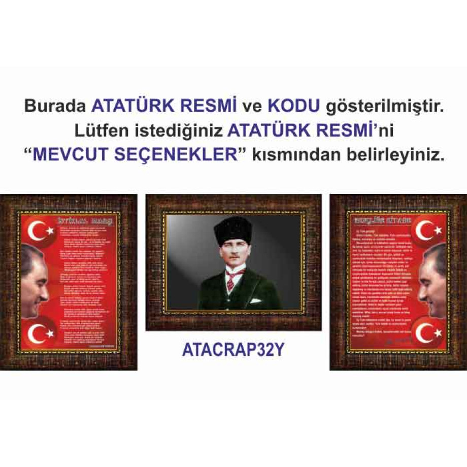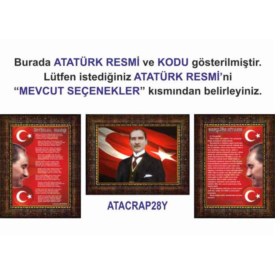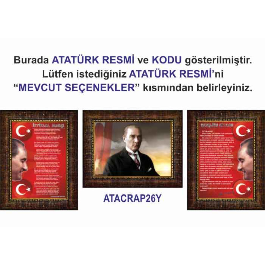 - 1 adet Atatürk resmi (Seçeceğiniz Atatürk resmini daha detaylı görmek için Çerçeveli Atatürk Resimleri kategorisine tıklayın.)