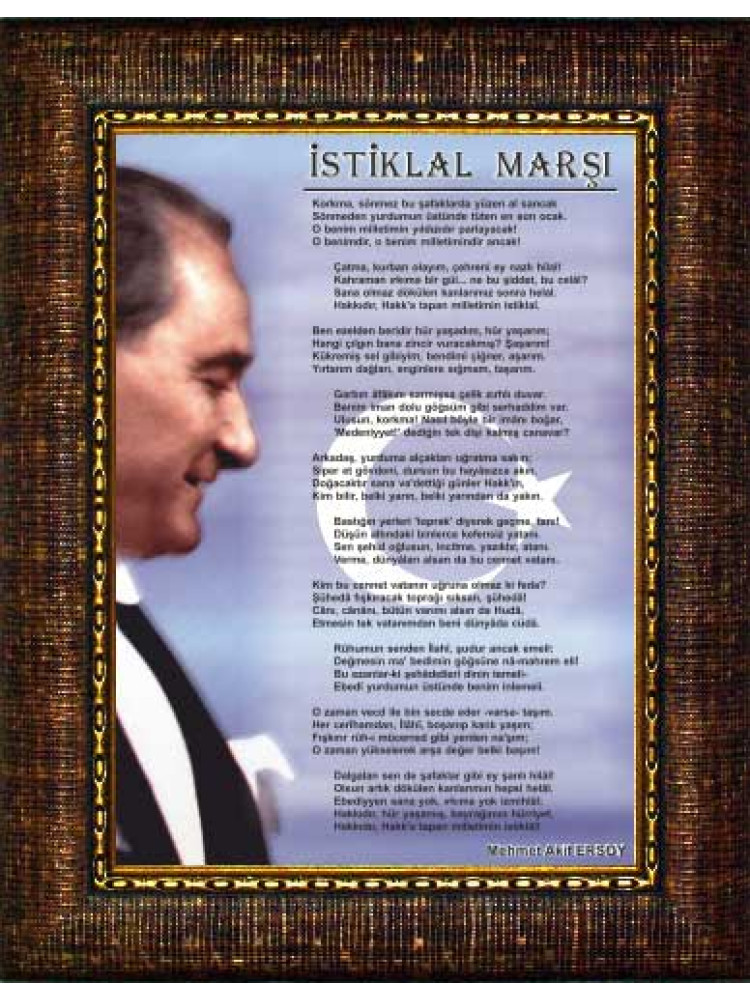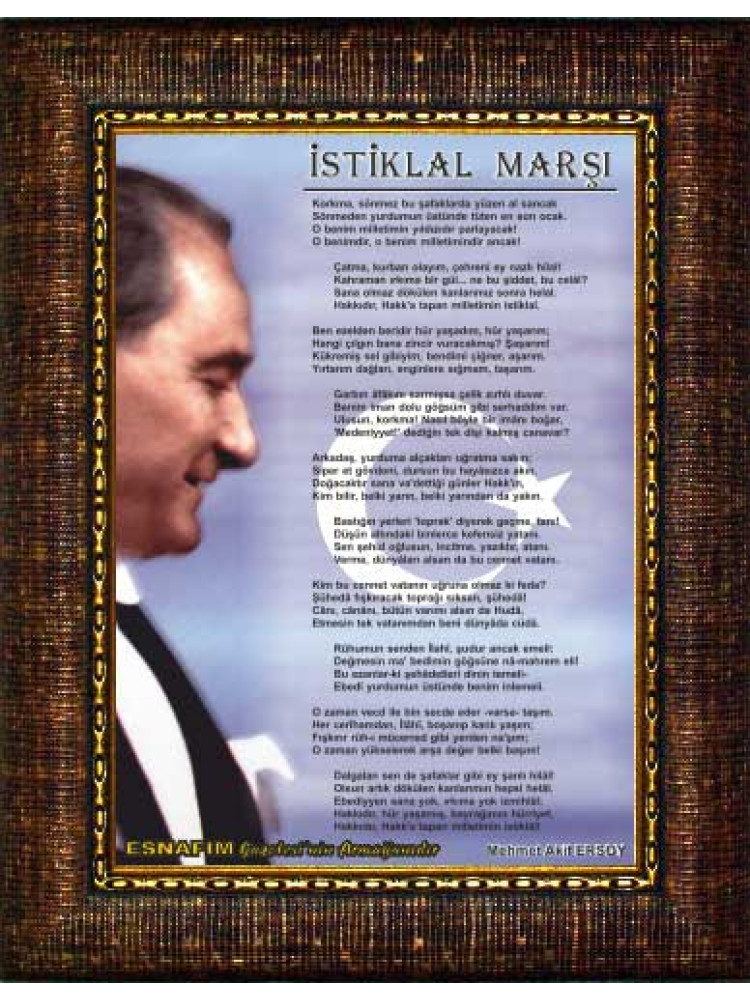 Yüksek çözünürlükte net ve kaliteli basılmış en güzel istiklal marşı resmini okul, ofis, makam odası ve resmi kurumlar için çerçeveli resim olarak büyük boy satın alabilirsiniz.