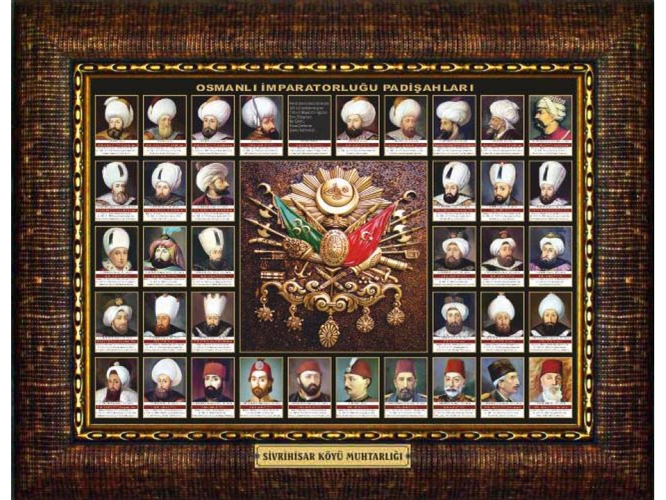 Osmanlı Padişahları Resimleri Sırasıyla Siyah Renk Zeminde Çerçeveli Resim - Anicr05opz