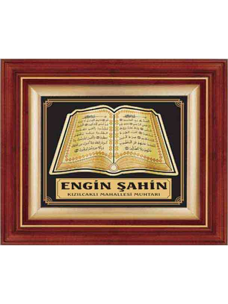 Fatiha Suresi ve Bakara Suresi Yazılı Yaprak Kabartmalı Duvar Panosu (Altın-İsimli) 37x46cm ANIDPYFB37A
