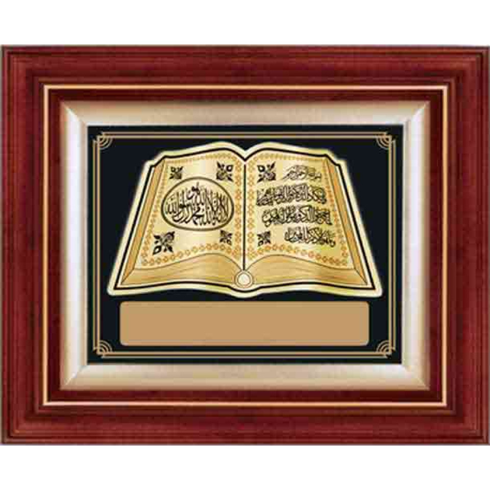Kelime-i Tevhid ve Nazar Ayeti Yazılı Yaprak Kabartmalı Duvar Panosu (Altın-İsimli) 37x46cm) ANIDPYKN37A