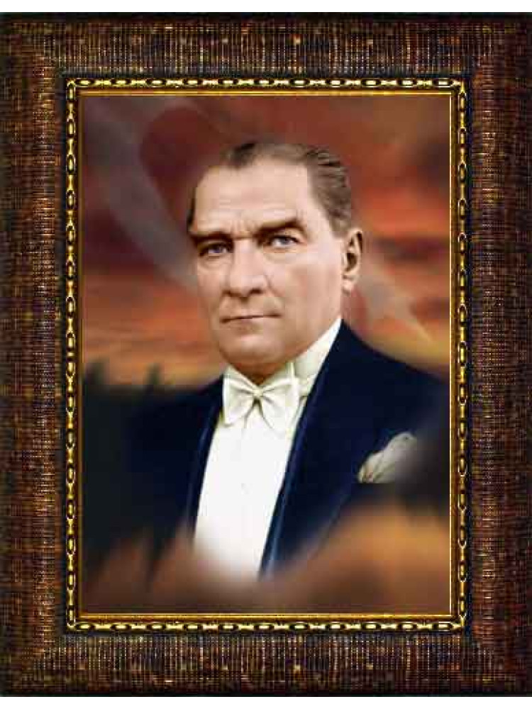 Mustafa Kemal Atatürk portresi içeren bu çerçeveli tablo, makam odası, ofis, okul, kurum ve ev dekorasyonunda anlamlı ve güçlü bir görünüm oluşturmak isteyenler için hazırlanmıştır. Yüksek kaliteli baskı ile sunulan bu model, bulunduğu ortama estetik, düzenli ve dikkat çekici bir hava katar.