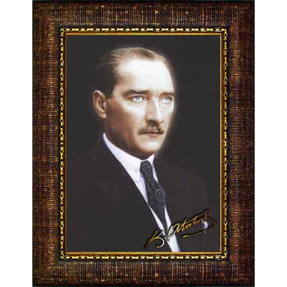 Mustafa Kemal Atatürk portresi içeren bu çerçeveli tablo, makam odası, ofis, okul ve resmi alanlar için tercih edilen dekoratif ürünler arasında yer almaktadır. Yüksek kaliteli baskı ile hazırlanan Atatürk portresi, estetik ve anlamlı bir görünüm sunar.