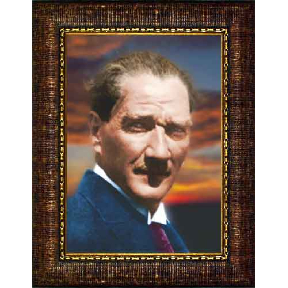 Mustafa Kemal Atatürk portresi içeren bu çerçeveli tablo, makam odası, ofis, okul ve resmi alanlar için tercih edilen dekoratif ürünler arasında yer almaktadır. Yüksek kaliteli baskı ile hazırlanan Atatürk portresi, estetik ve anlamlı bir görünüm sunar.