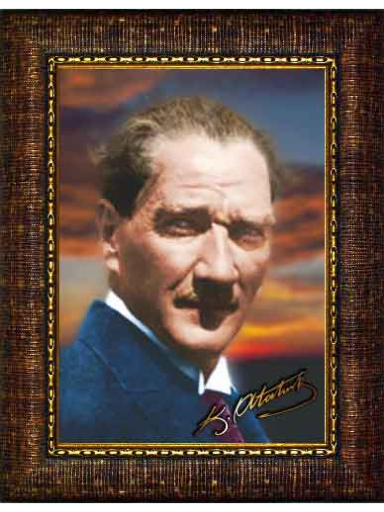 Mustafa Kemal Atatürk portresi içeren bu çerçeveli tablo, makam odası, ofis, okul, kurum ve ev dekorasyonunda anlamlı ve güçlü bir görünüm oluşturmak isteyenler için hazırlanmıştır. Yüksek kaliteli baskı ile sunulan bu model, bulunduğu ortama estetik, düzenli ve dikkat çekici bir hava katar.