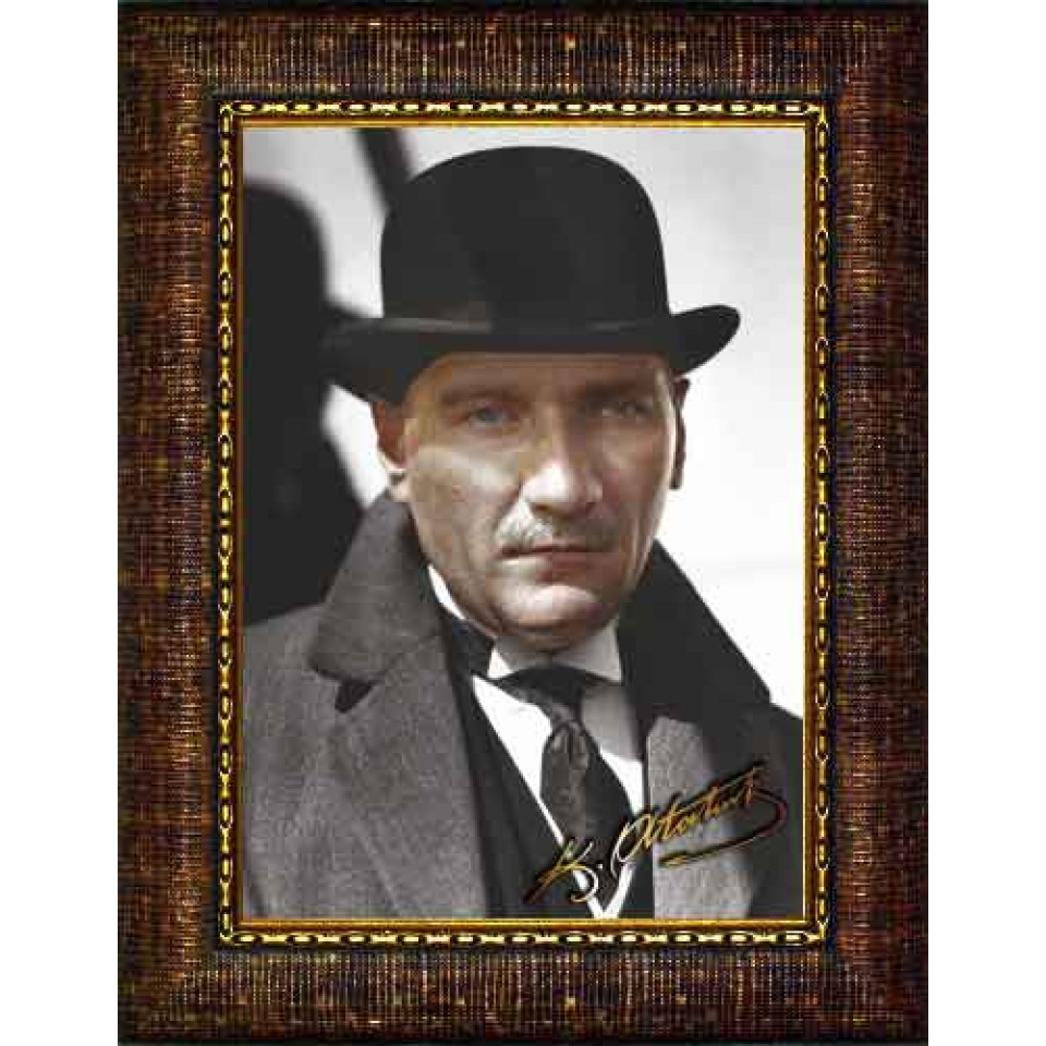 Atatürk Tablosu Çerçeveli - Melon Şapkalı ATACRAP16D