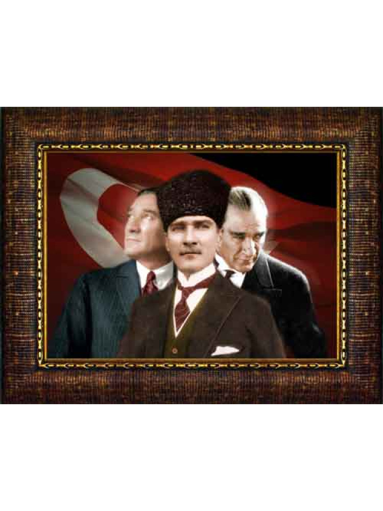 Yan Yana Üç Figürlü Yatay Model, atatürk tablosu, çerçeveli atatürk tablosu, atatürk portresi