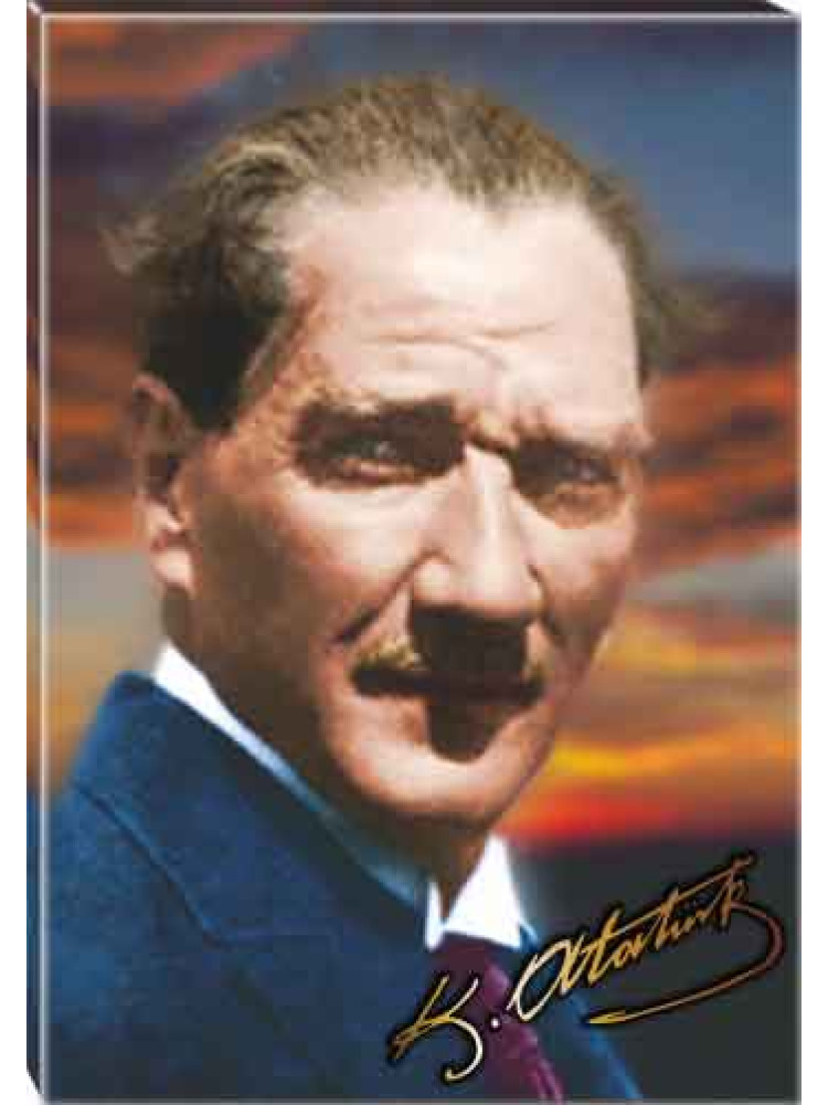 Mustafa Kemal Atatürk portresi içeren bu kanvas tablo, makam odası, ofis, okul, kurum ve ev dekorasyonunda anlamlı ve güçlü bir görünüm oluşturmak isteyenler için hazırlanmıştır. Yüksek kaliteli baskı ile sunulan bu model, bulunduğu ortama estetik, sade ve dikkat çekici bir hava katar.