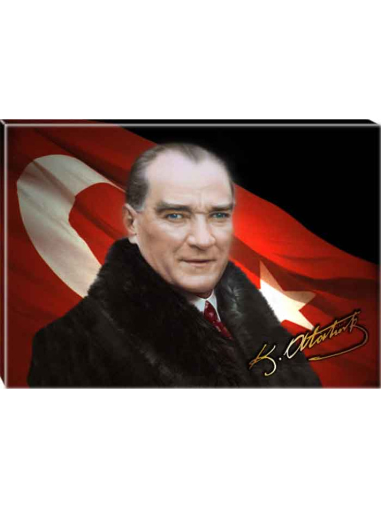 Atatürk Tablosu Kanvas - Kürklü Bayraklı Yatay ATATRAP22Y