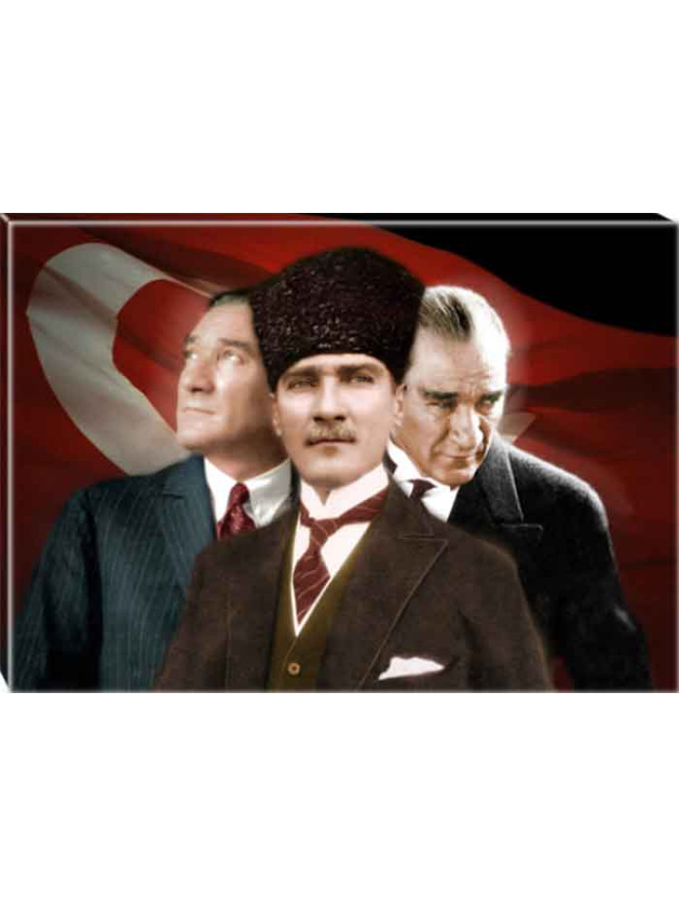 Atatürk Tablosu Kanvas - 3 Figürlü Yatay ATATRAP70Y
