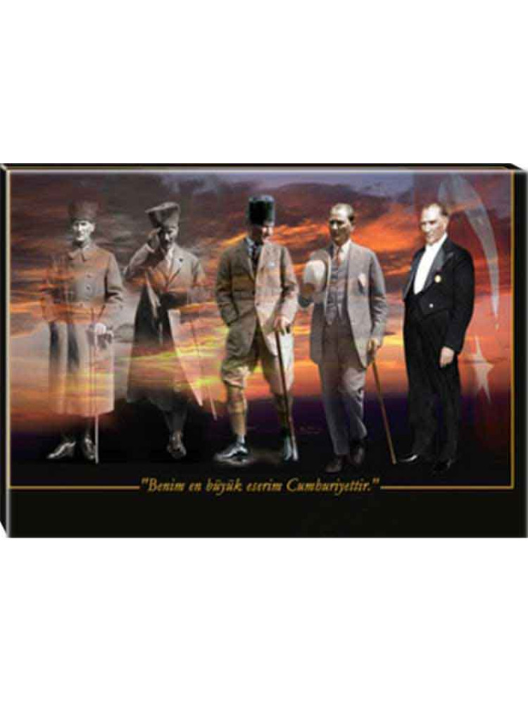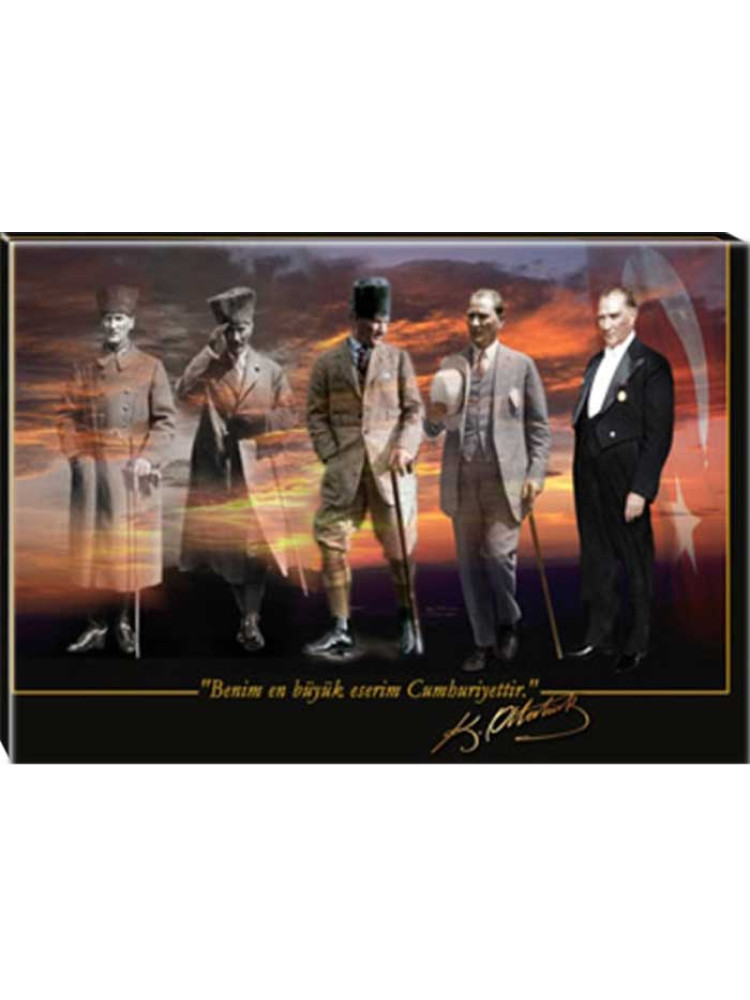 5 Figürlü Ayakta Boydan Yatay, atatürk tablosu, kanvas atatürk tablosu, atatürk portresi