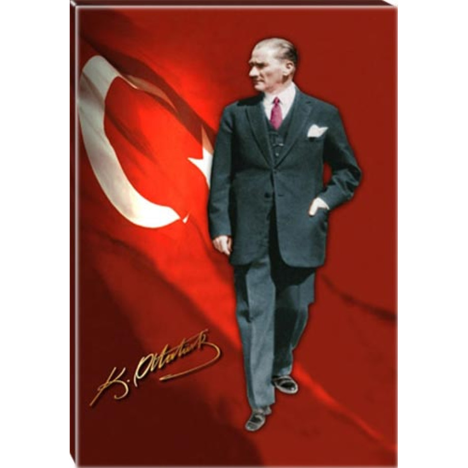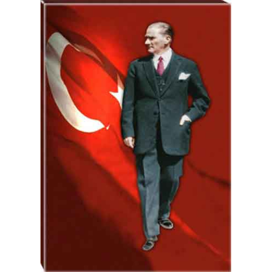 Atatürk Tablosu Kanvas - Ayakta Boydan Bayraklı Tasarım ATATRAP83D