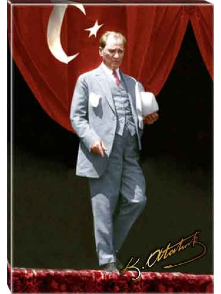 Satın alacağınız kanvas Atatürk tablosu, dilerseniz Atatürk imzası "olsun" seçerek Atatürk imzalı tablo olabilir.