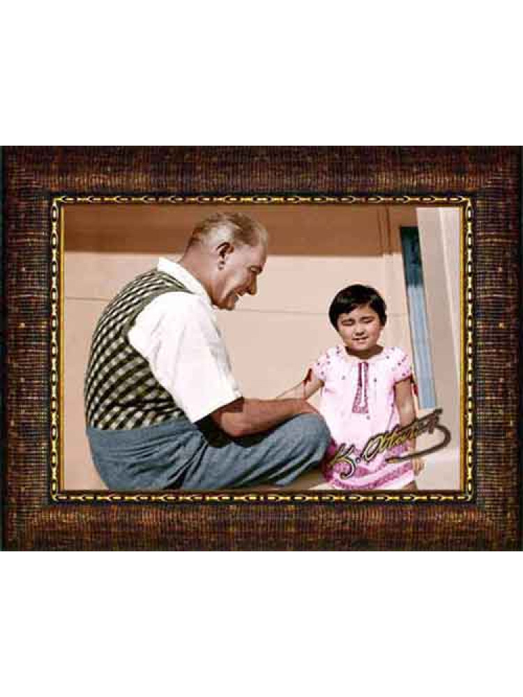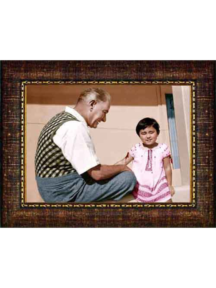 Atatürk Tablosu Çerçeveli - Ülkü Çocukla Oynayan Yatay ATACRAP94Y