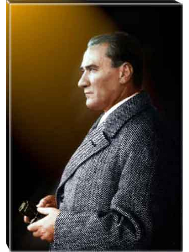 Atatürk Tablosu Kanvas - Dürbünlü Yandan Profil Portresi ATATRAP52D