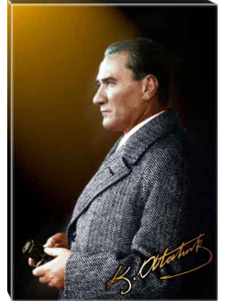 Mustafa Kemal Atatürk portresi içeren bu kanvas tablo, makam odası, ofis, okul, kurum ve ev dekorasyonunda anlamlı ve güçlü bir görünüm oluşturmak isteyenler için hazırlanmıştır. Yüksek kaliteli baskı ile sunulan bu model, bulunduğu ortama estetik, sade ve dikkat çekici bir hava katar.