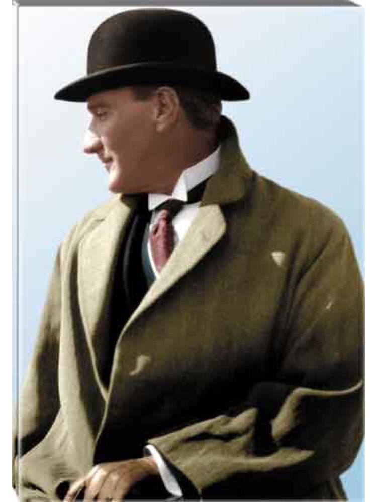 Atatürk Tablosu Kanvas - Melon Şapkalı Yandan Profil Portresi ATATRAP53D