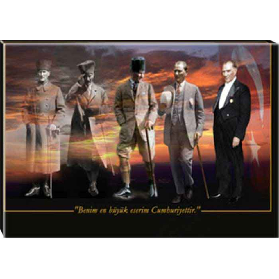 Atatürk Tablosu Kanvas - 5 Figürlü Ayakta Boydan Yatay ATATRAP72Y