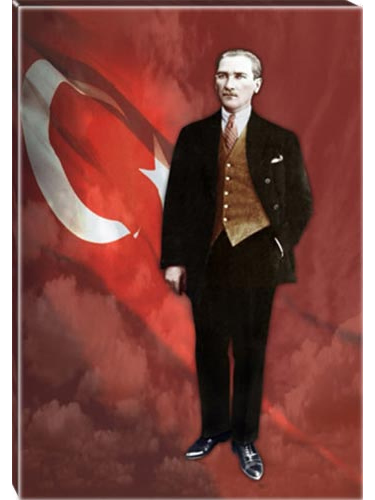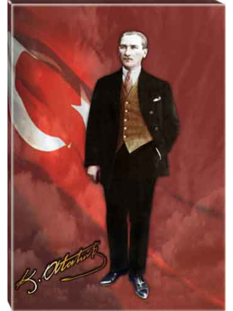Ayakta Boydan Bayraklı Tasarım, atatürk tablosu, kanvas atatürk tablosu, atatürk portresi