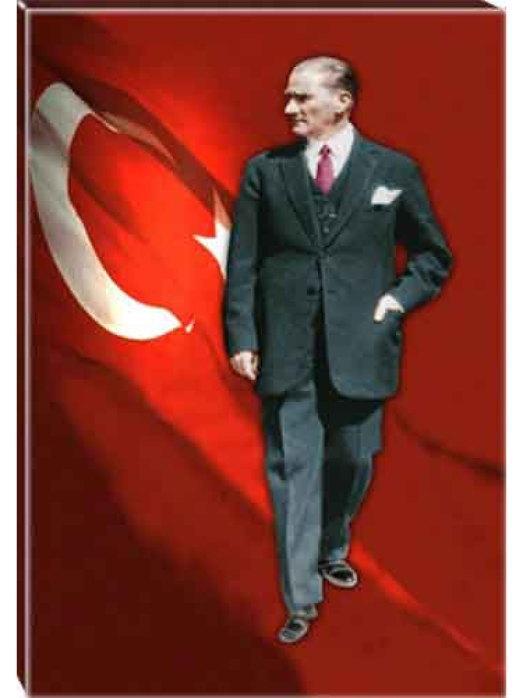 Atatürk Tablosu Kanvas - Ayakta Boydan Bayraklı Tasarım ATATRAP83D