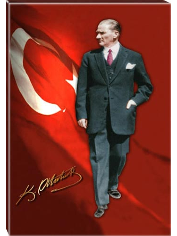 Ayakta Boydan Bayraklı Tasarım, atatürk tablosu, kanvas atatürk tablosu, atatürk portresi