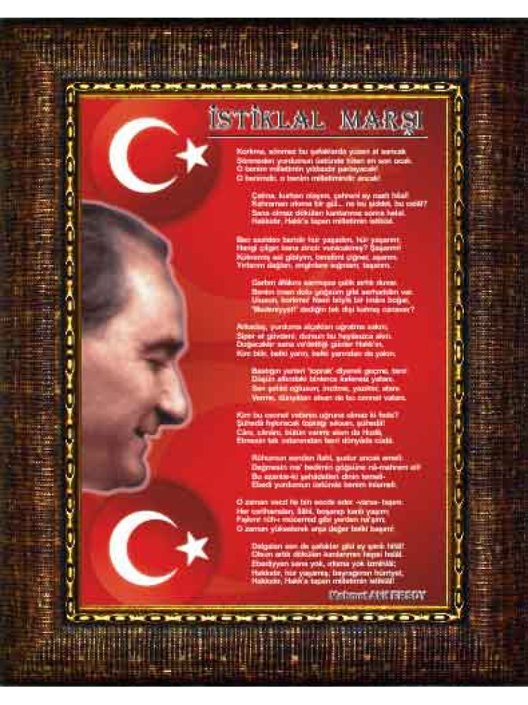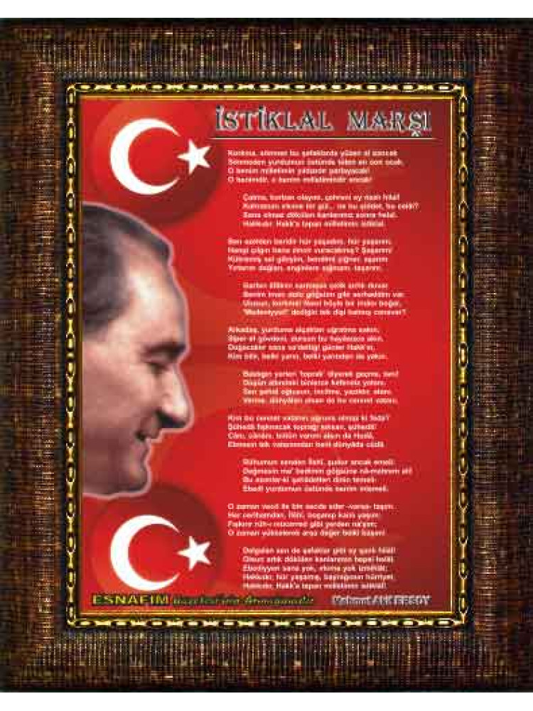 Yüksek çözünürlükte net ve kaliteli basılmış en güzel istiklal marşı resmini okul, ofis, makam odası ve resmi kurumlar için çerçeveli resim olarak büyük boy satın alabilirsiniz.