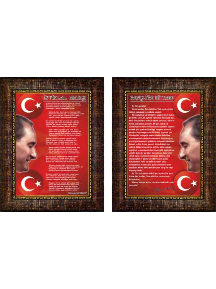 İstiklal Marşı ve Gençliğe Hitabe Resmi Çerçeveli Resim İkili Set - Anicr24r2d