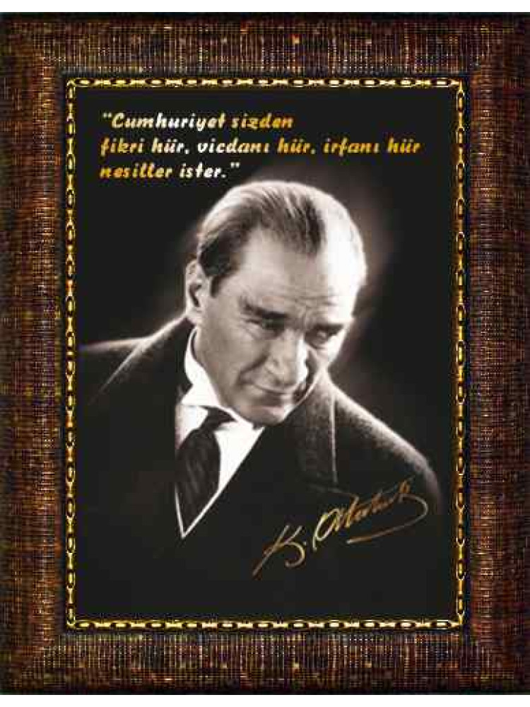 Atatürk Tablosu Çerçeveli - Öğretmen İle İlgili Sözü Yazılı ATSCR01DEE