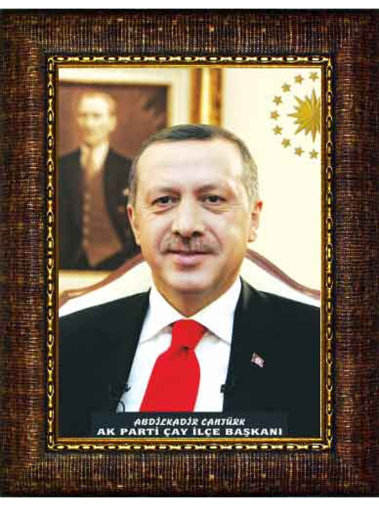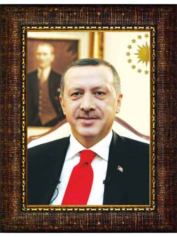 Recep Tayyip Erdoğan çerçeveli tablo modelleri. Dikey ve yatay Erdoğan portreleri, makam odası ve ofis dekorasyonu için kaliteli tablo seçenekleri.