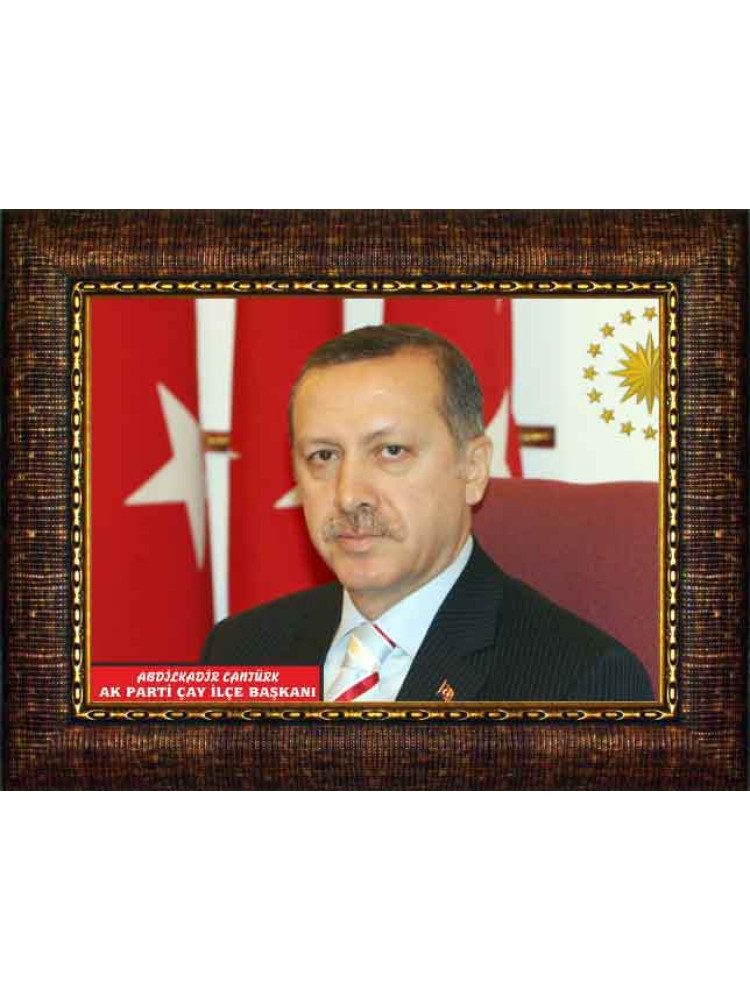 Recep Tayyip Erdoğan Çerçeveli Tablo - Üç Bayraklı Yatay Model AKPCR02TEY