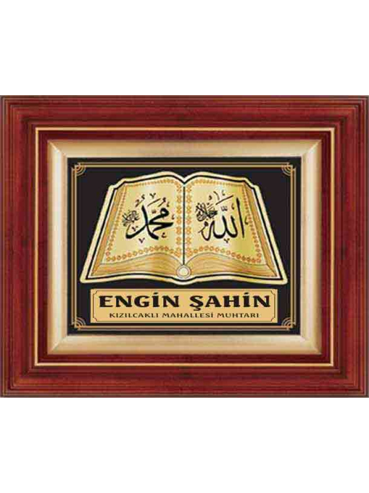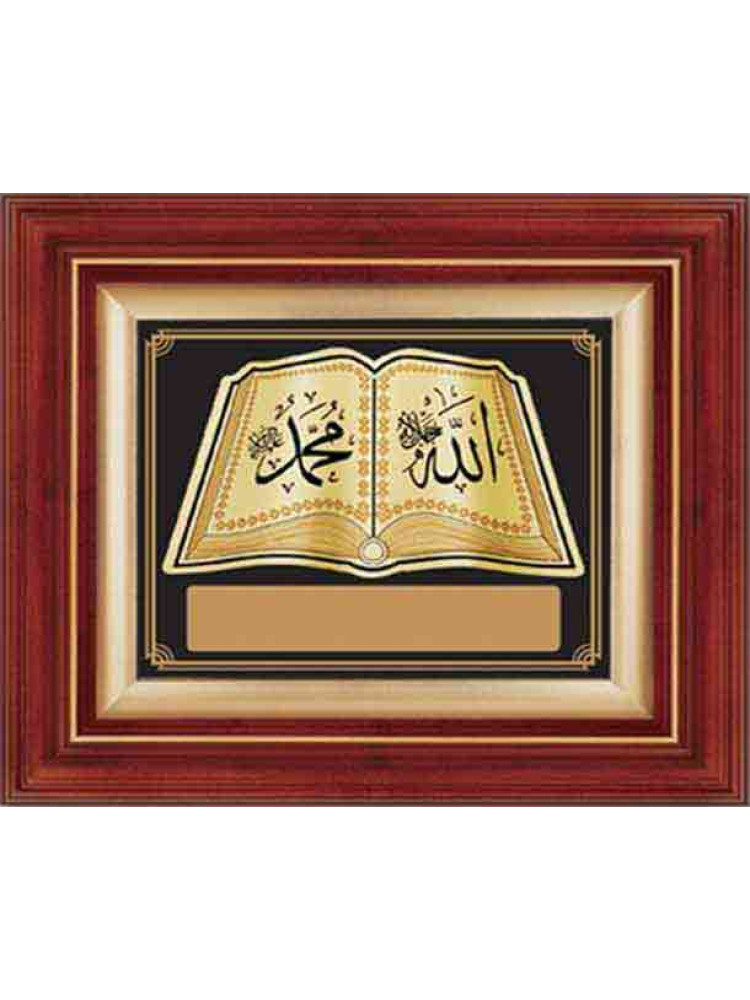 Allah (cc) ve Muhammed (sav) Lafzı Yazılı Yaprak Kabartmalı Duvar Panosu (Altın-İsimli) 37x46cm ANIDPYMA37A