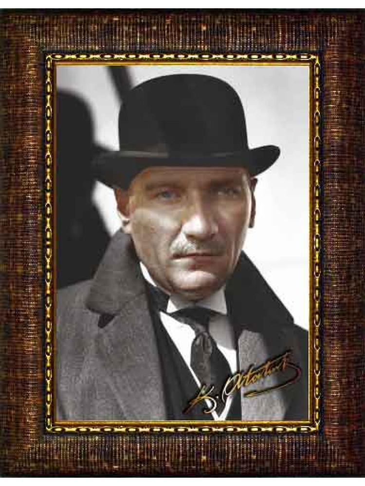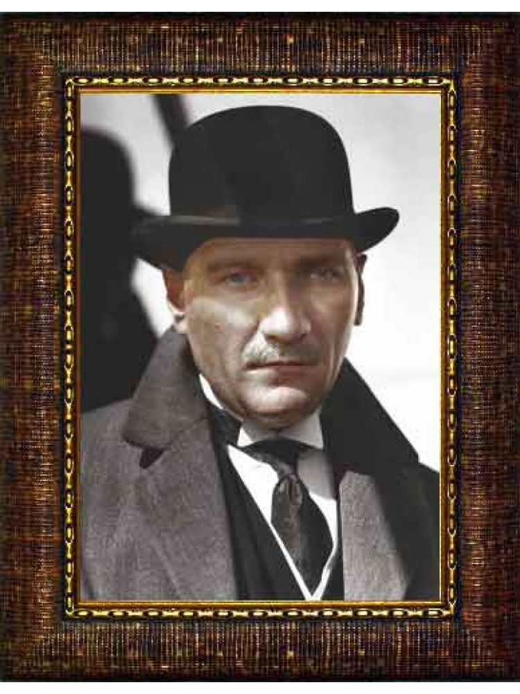 Atatürk Tablosu Çerçeveli - Melon Şapkalı Portre ATACRAP16D