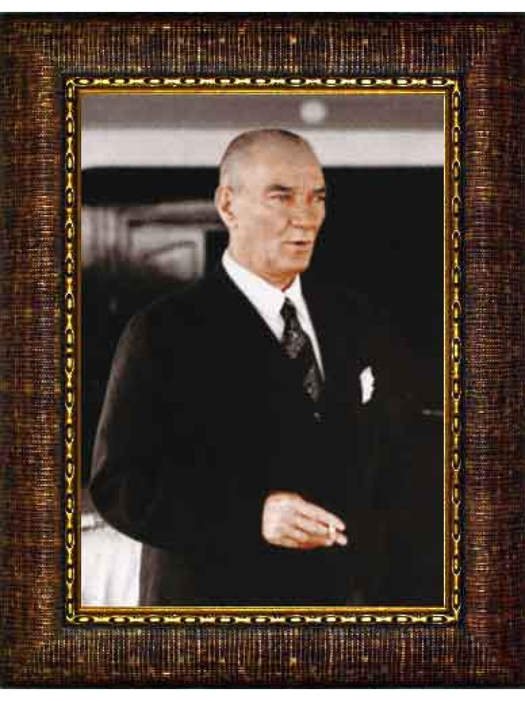 Mustafa Kemal Atatürk portresi içeren bu çerçeveli tablo, makam odası, ofis, okul, kurum ve ev dekorasyonunda anlamlı ve güçlü bir görünüm oluşturmak isteyenler için hazırlanmıştır. Yüksek kaliteli baskı ile sunulan bu model, bulunduğu ortama estetik, düzenli ve dikkat çekici bir hava katar.