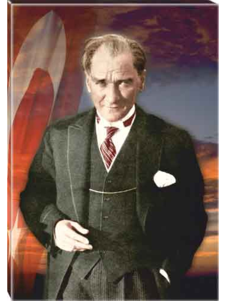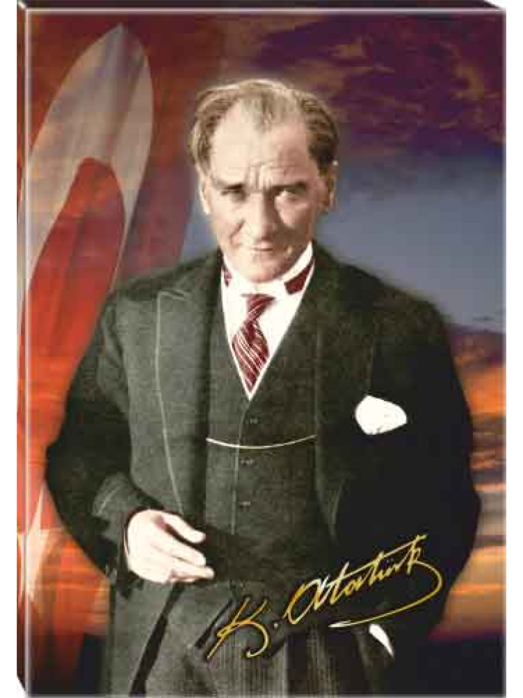 Atatürk Tablosu Kanvas - Bayraklı Tasarım ATATRAP37D
